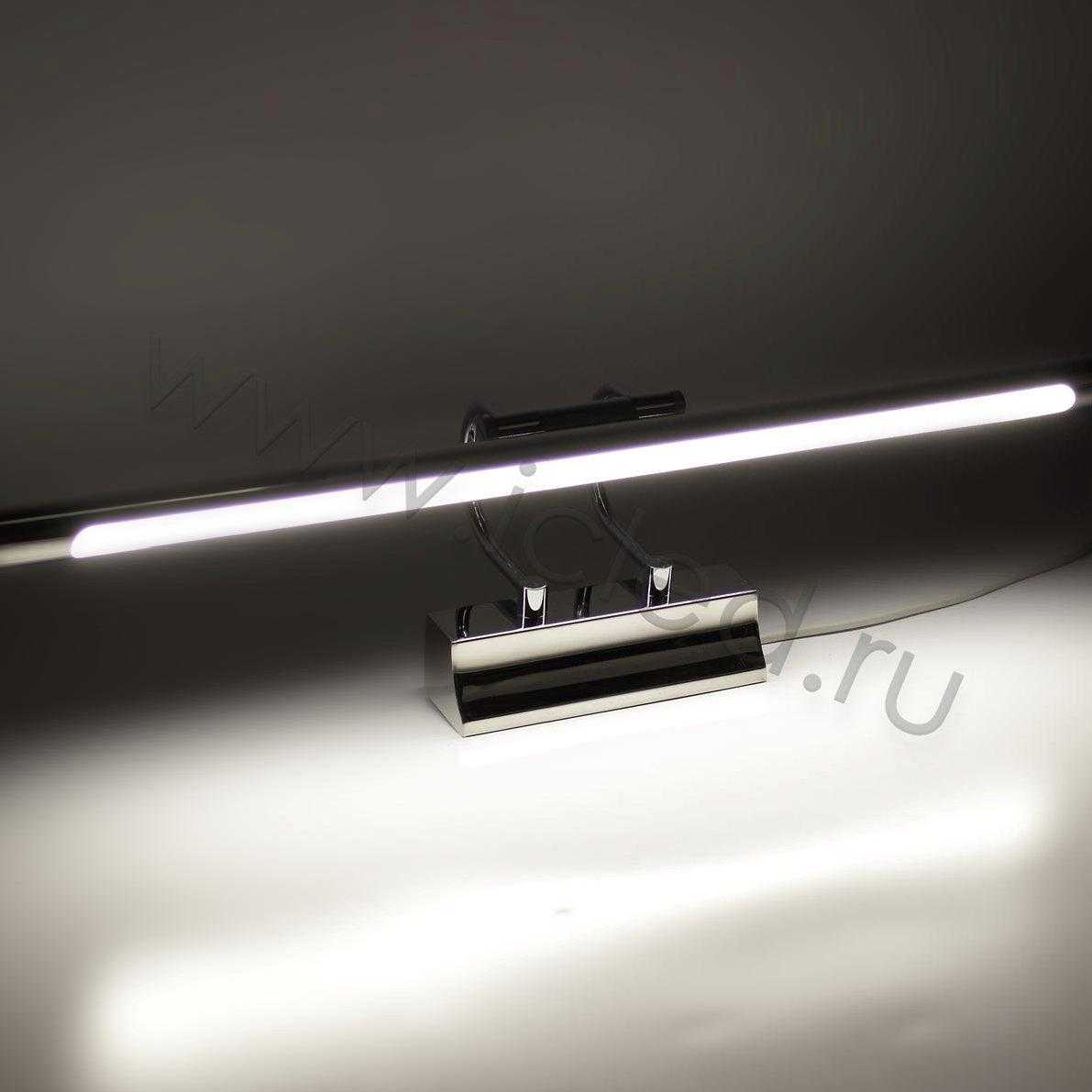 Светодиодная подсветка картин и зеркал. Напряжение 220V, мощность 7W, цвет свечения дневной белый 3800-4200K, световой поток 500Lm, угол свечения 120 градусов, регулируемый угол наклона, Класс защиты IP33. Размеры 550x100x130мм.