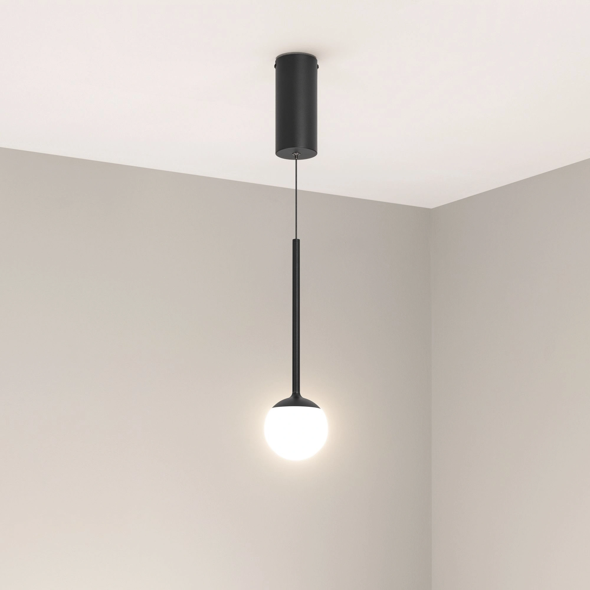 Декоративный подвесной светильник мощностью 8 Вт с дневным белым цветом свечения (4000 К). Дизайн светильника напоминает изящное украшение с жемчугом. Черный корпус с черной вставкой на регулируемом подвесе длиной 1150 мм. Диаметр светового модуля 100 мм. Высокий индекс цветопередачи (CRI>90) и световой поток 620 лм для качественного декоративного освещения. Минимальный коэффициент пульсации света (менее 1%) гарантирует зрительный комфорт. Драйвер в комплекте для подключения к сети 230 В.