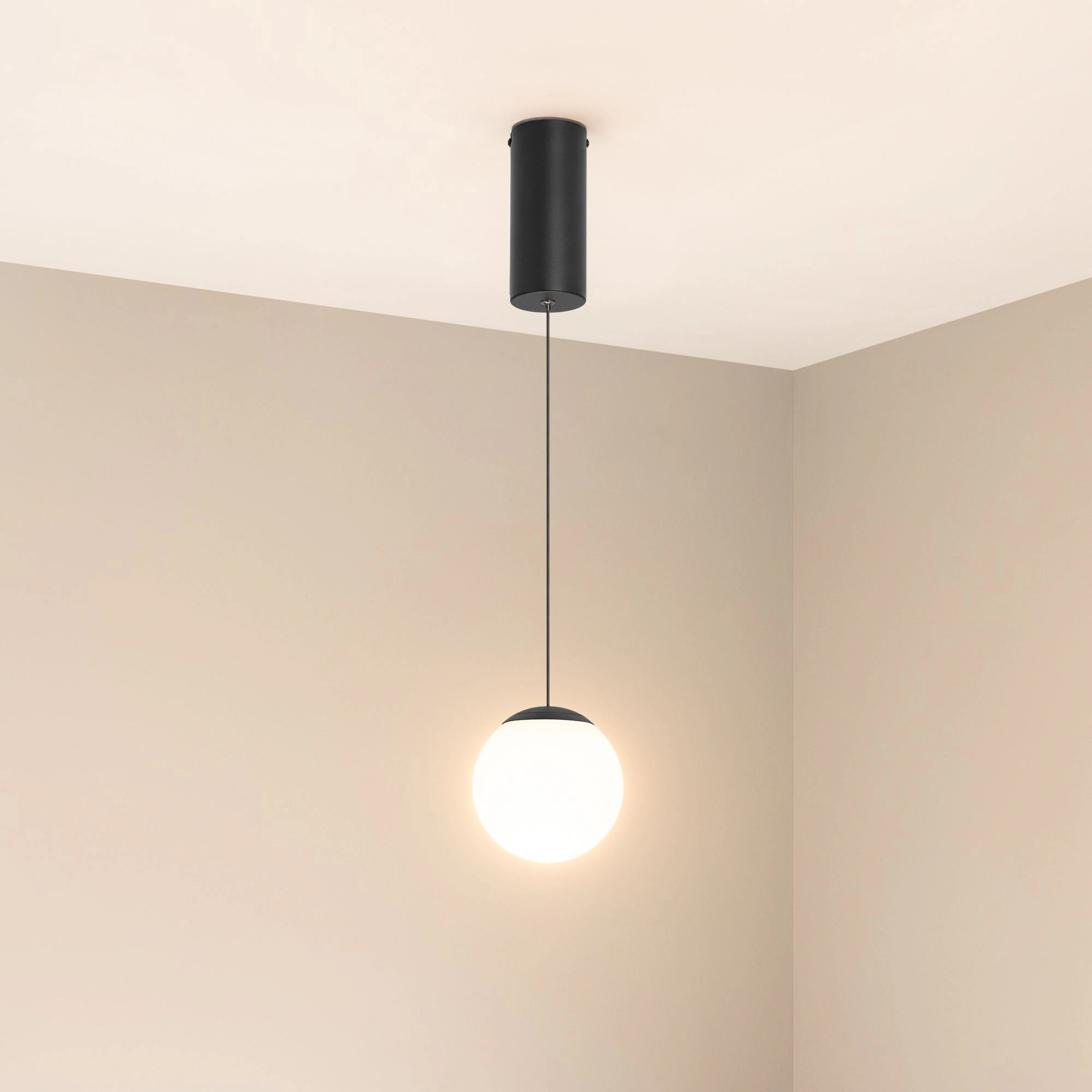 Декоративный подвесной светильник мощностью 10 Вт с теплым белым цветом свечения (3000 К). Дизайн светильника напоминает изящное украшение с жемчугом. Черный корпус с черной вставкой на регулируемом подвесе длиной 1350 мм. Диаметр светового модуля 130 мм. Высокий индекс цветопередачи (CRI>90) и световой поток 720 лм для качественного декоративного освещения. Минимальный коэффициент пульсации (менее 1%) гарантирует зрительный комфорт. Драйвер в комплекте для подключения к сети 230 В.
