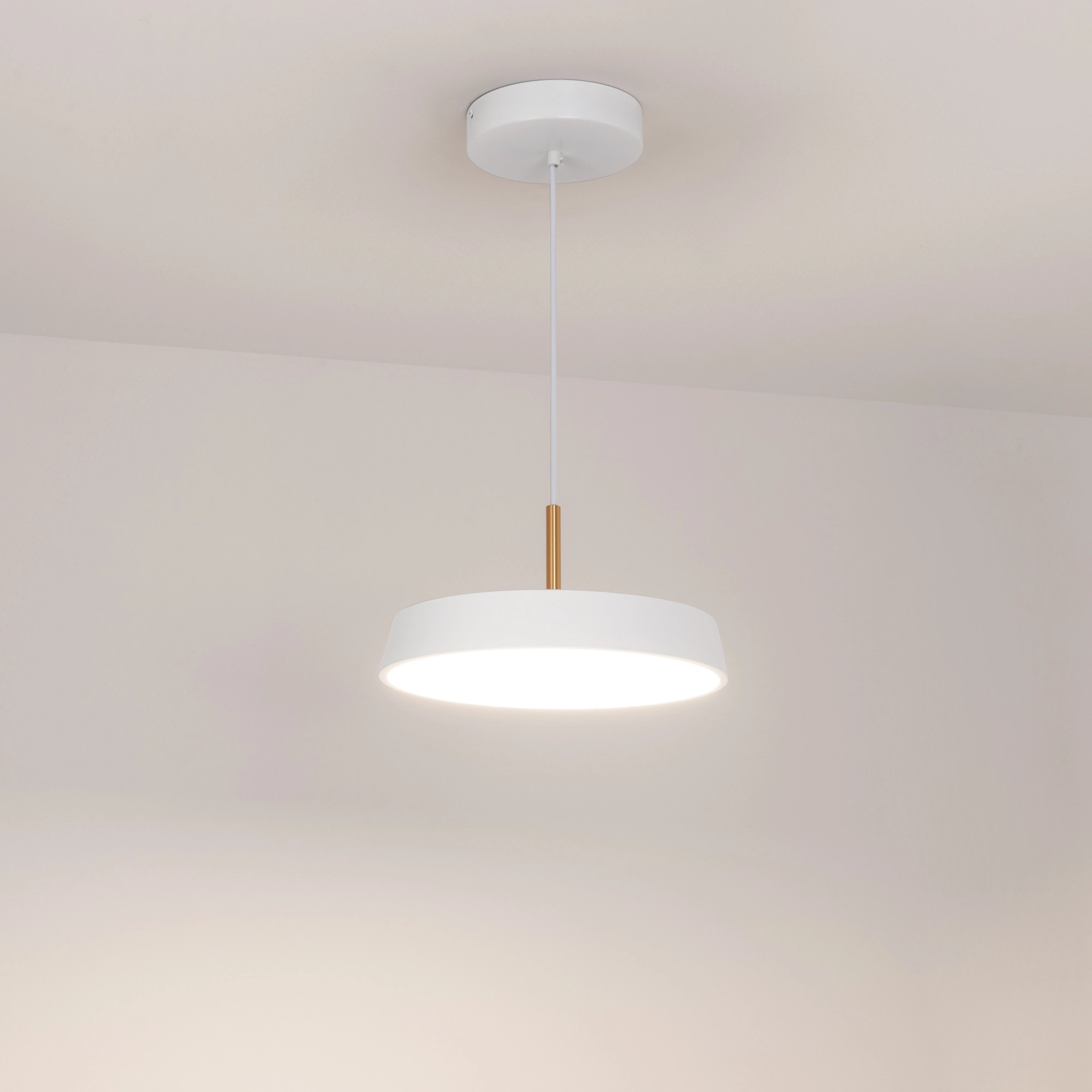 Подвесной светильник SP-ELEGANT-R300-17W Day4000 (WH, 120 deg, 230V) мощностью 17 Вт с дневным белым цветом свечения (4000 К) и индексом цветопередачи CRI>80 для освещения торговых, офисных, жилых и других помещений. Круглый корпус из стали на изящном подвесе длиной 1200 мм с золотистой декоративной вставкой будет уместно смотреться в любом интерьере. Световой поток 1258 лм и широкий угол излучения 120° для создания основного освещения. Коэффициент пульсации менее 1% гарантирует комфортное и приятное для глаз освещение без мерцания. Подвесной монтаж и удобная регулировка длины подвеса без специального инструмента. Компактный встроенный драйвер позволяет быстро и безопасно подключить светильник к сети переменного тока 230 В.