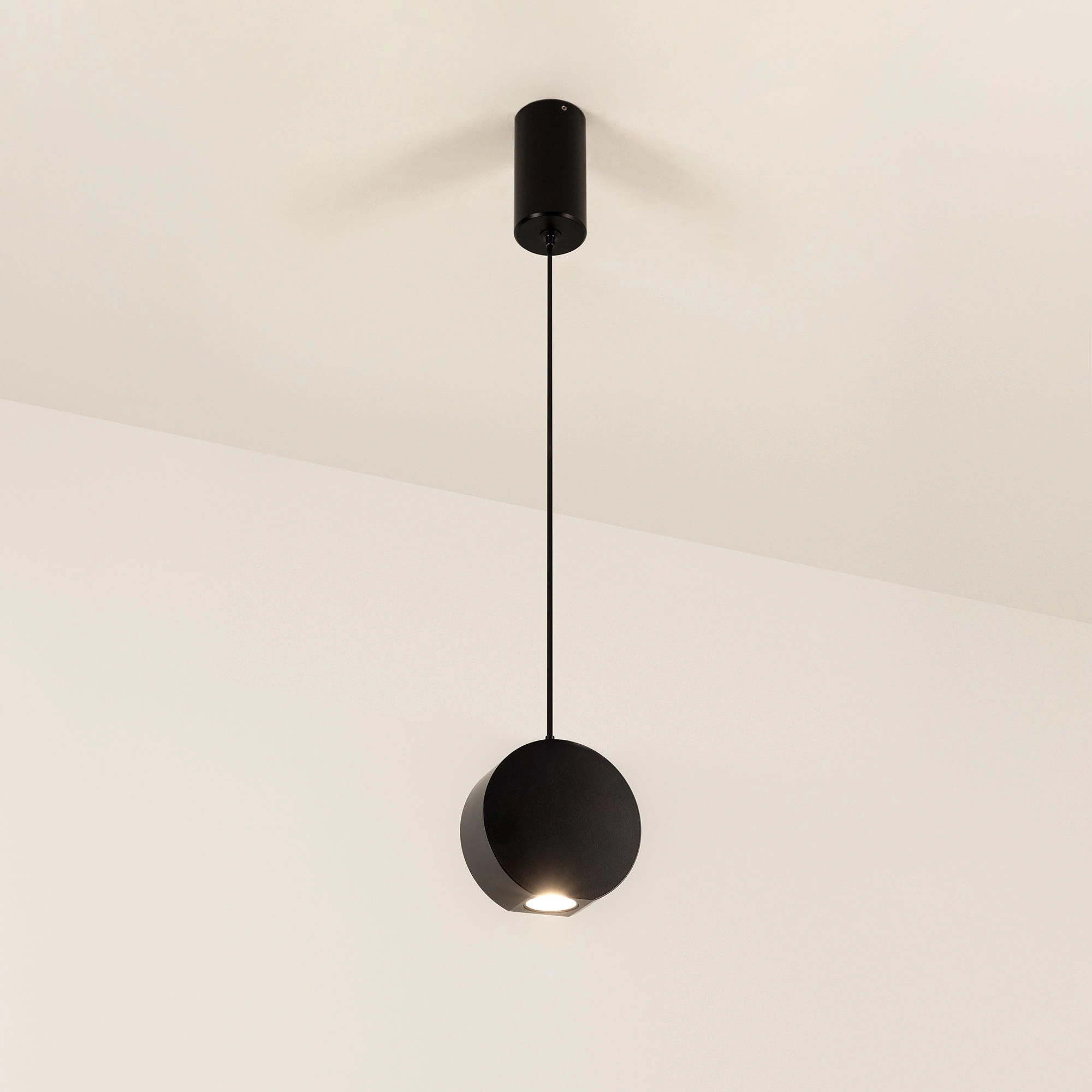 Подвесной светильник SP-ELEMENTA-ROLL-R100-9W Warm3000 (BK, 39 deg, 230V) мощностью 9 Вт с теплым белым цветом свечения (3000 К) и индексом цветопередачи CRI>80 предназначен для освещения торговых, офисных, жилых и других помещений. У светильника стильный дизайн и качественное исполнение, поэтому он станет не только источником света, но и стильным декоративным элементом любого интерьера. Световой поток 650 лм и узкий угол излучения 39° помогут при создании световых акцентов. Коэффициент пульсации менее 5% гарантирует комфортное и приятное для глаз освещение без мерцания. Подвесной монтаж и удобная регулировка длины подвеса без специального инструмента. Встроенный драйвер обеспечивает быстрое подключение к сети переменного тока 230 В.