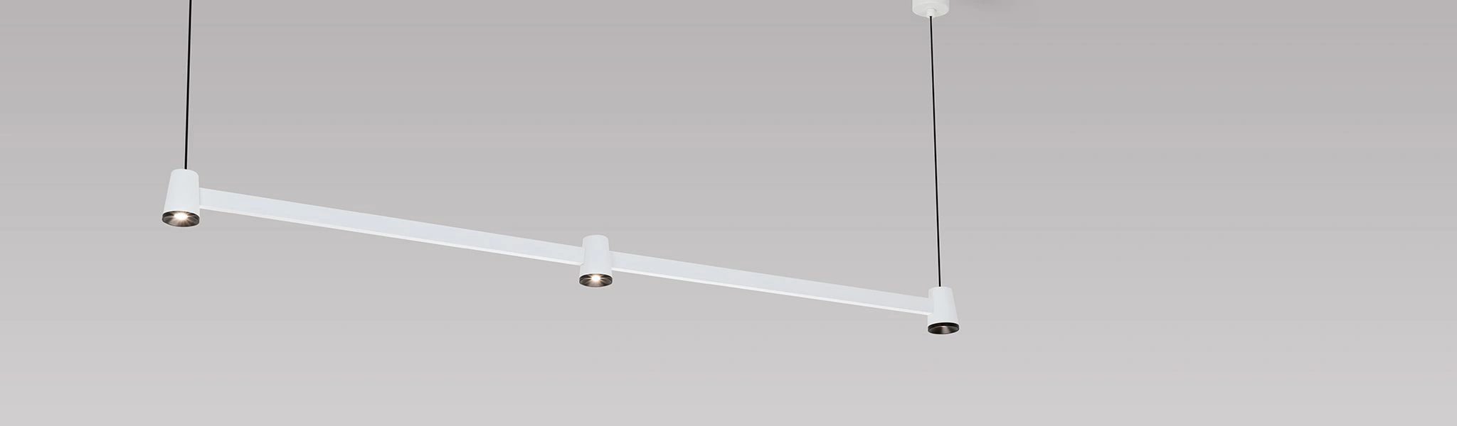 Подвесной светильник. Мощность 16 Вт, св. поток 1010 лм, 63 лм/Вт, теплый 3000 K, CRI>90, угол 35°, напряжение питания 230 В. Белый корпус из алюминия, степень защиты IP20. Размер: длина 1039 мм, ширина 40 мм, высота 55 мм, размер чаши: диаметр 50 мм, высота 90 мм. Монтаж подвесной, длина подвеса 1300 мм. Драйвер 27-38 В, 500 мА, пульсация <1%.