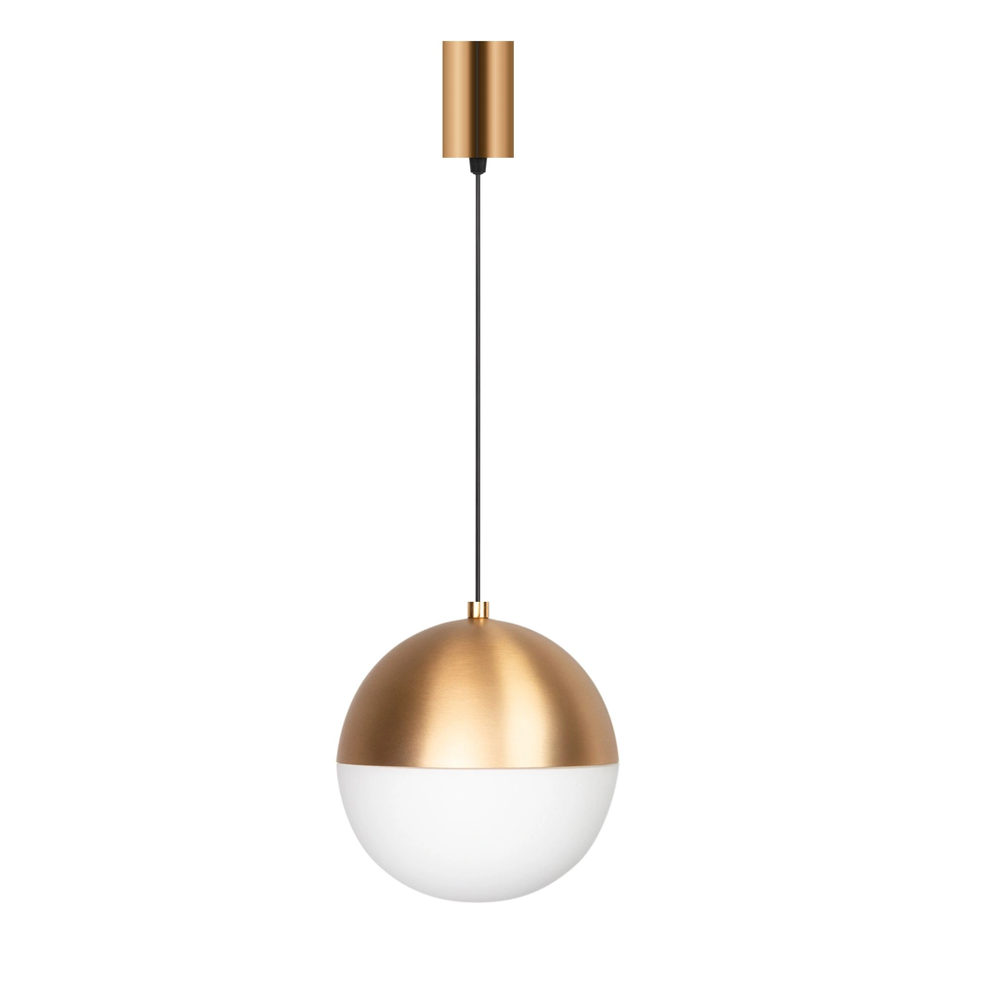 Элегантный подвесной светильник мощностью 16 Вт с теплым белым цветом свечения (3000 К). Для подвесного монтажа на потолок. Матовый плафон с широким углом излучения 180° создает приятное рассеянное свечение и особую теплую атмосферу в любых интерьерах: от частных до коммерческих. Золотой корпус на регулируемом подвесе длиной 1500 мм. Диаметр светового модуля 200 мм. Высокий индекс цветопередачи (CRI>90) и световой поток 1120 лм для качественного декоративного освещения. Минимальный коэффициент пульсации (менее 1%) гарантирует зрительный комфорт. Встроенный драйвер для подключения к сети 230 В.