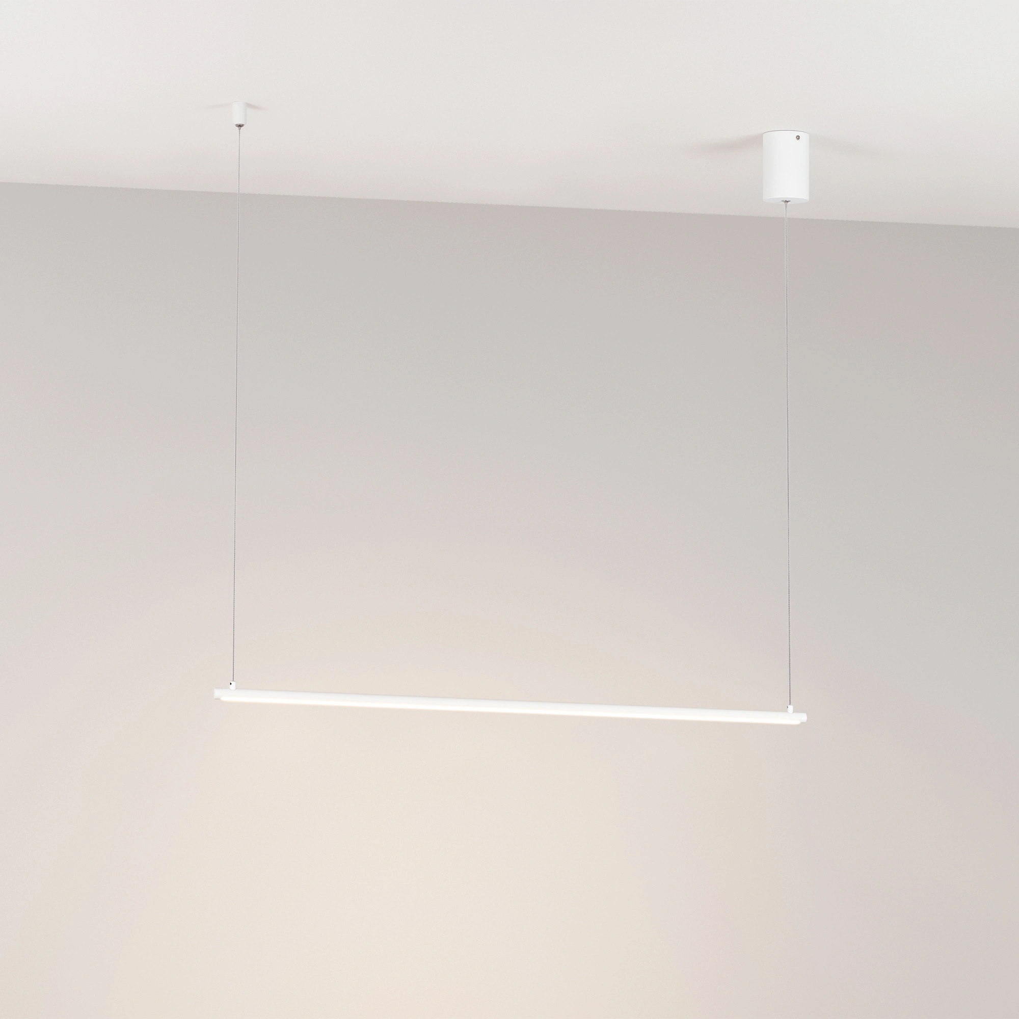 Декоративный подвесной светильник мощностью 15 Вт с дневным белым цветом свечения (4000 К). Сбалансированный минималистичный дизайн и высокая световая эффективность. Горизонтальное свечение вниз. Белый изящный корпус из металла длиной 910 мм на регулируемом тросе. Композиции из нескольких светильников будут стильно смотреться при оформлении спальных зон и гостиных. При размещении светильников возле стены создается эффект отраженного света. Регулируемая длина подвеса позволяет размещать светильники на разной высоте и подстраивать их под высоту потолков. Световой поток 531 лм и высокий индекс цветопередачи (CRI>90) для качественного освещения. Драйвер в комплекте для подключения к сети 230 В.