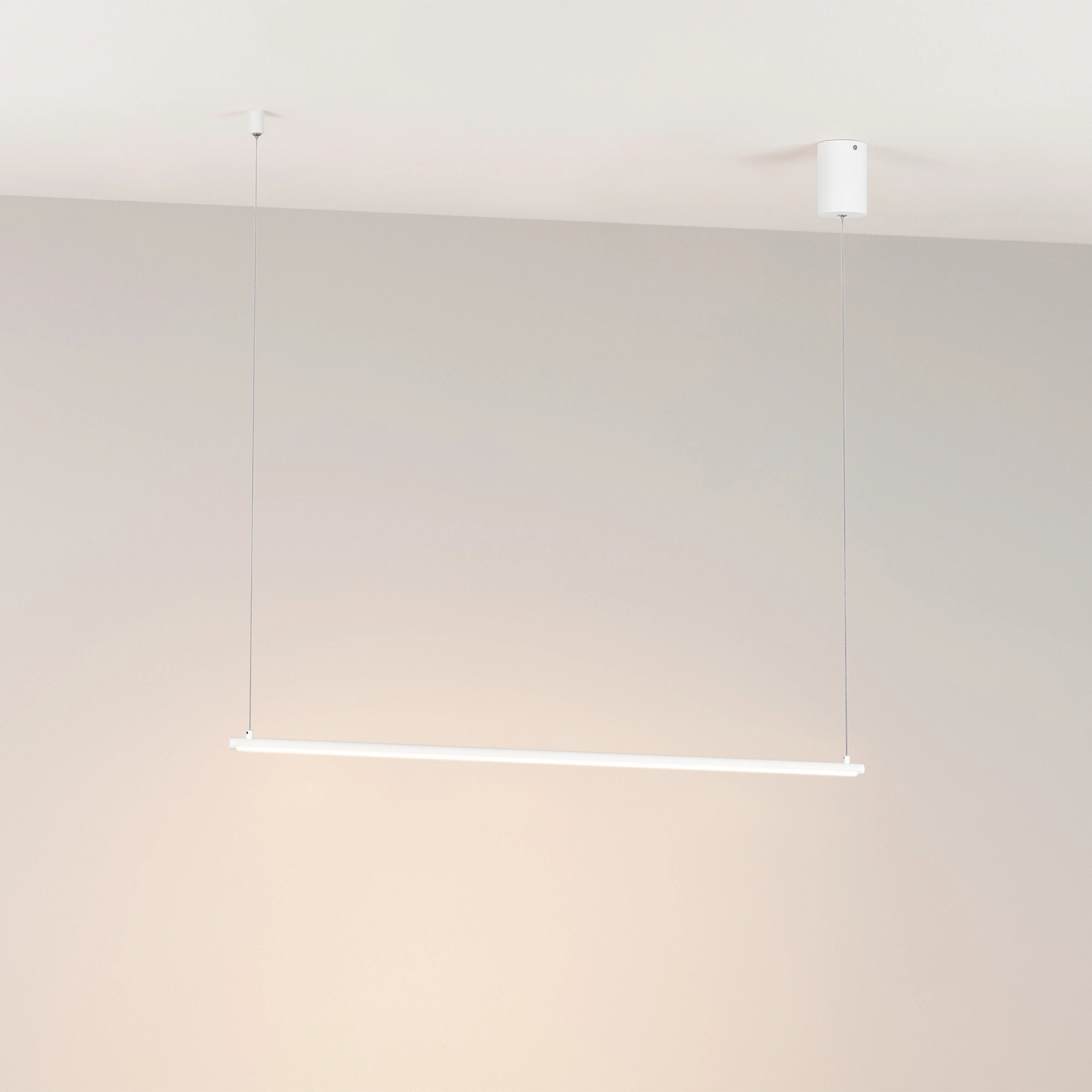 Декоративный подвесной светильник мощностью 15 Вт с теплым белым цветом свечения (3000 К). Сбалансированный минималистичный дизайн и высокая световая эффективность. Горизонтальное свечение вниз. Белый изящный корпус из металла длиной 910 мм на регулируемом тросе стильно смотрится в жилых и офисных помещениях. Регулируемая длина подвеса позволяет размещать светильники на разной высоте и подстраивать их под высоту потолков. Световой поток 531 лм и высокий индекс цветопередачи (CRI>90) для качественного освещения. Драйвер в комплекте для подключения к сети 230 В.
