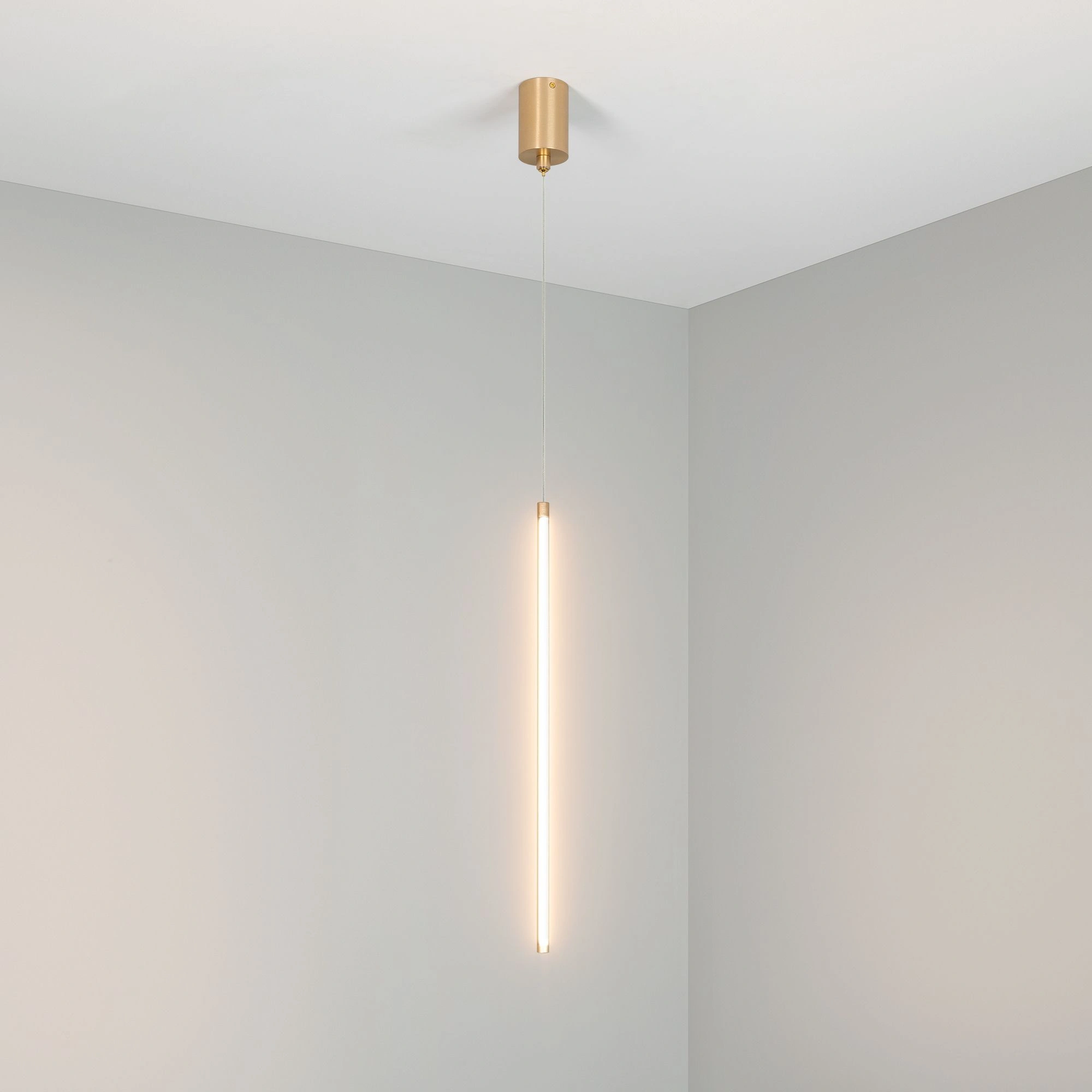 Декоративный подвесной светильник мощностью 10 Вт с теплым белым цветом свечения (3000 К). Сбалансированный минималистичный дизайн и высокая световая эффективность. Золотой изящный корпус из металла длиной 590 мм на регулируемом тросе. Композиции из нескольких светильников будут стильно смотреться при оформлении спальных зон и гостиных. При размещении светильников возле стены создается эффект отраженного света. Регулируемая длина подвеса позволяет размещать светильники на разной высоте и подстраивать их под высоту потолков. Световой поток 410 лм и высокий индекс цветопередачи (CRI>90) для качественного освещения. Драйвер в комплекте для подключения к сети 230 В.