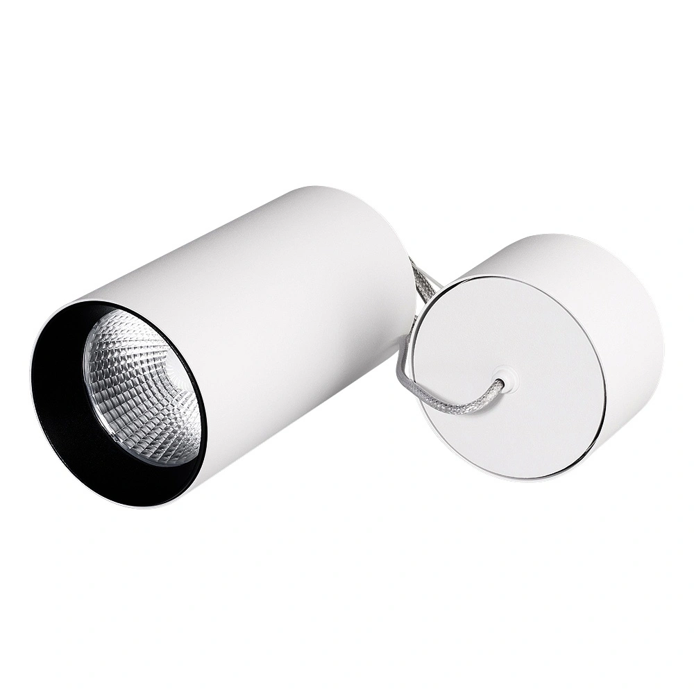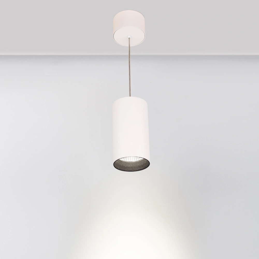 Подвесной светильник 15Вт, белый круглый корпус, черная вставка, металл. Цвет ДНЕВНОЙ БЕЛЫЙ 4000K, св.поток 1100лм, CRI(Ra)>80, угол 40°. Размер Ø85x155мм. Встроенный драйвер PRI:220-240VAC, SEC:DC 350mA 30-43V 15Вт.