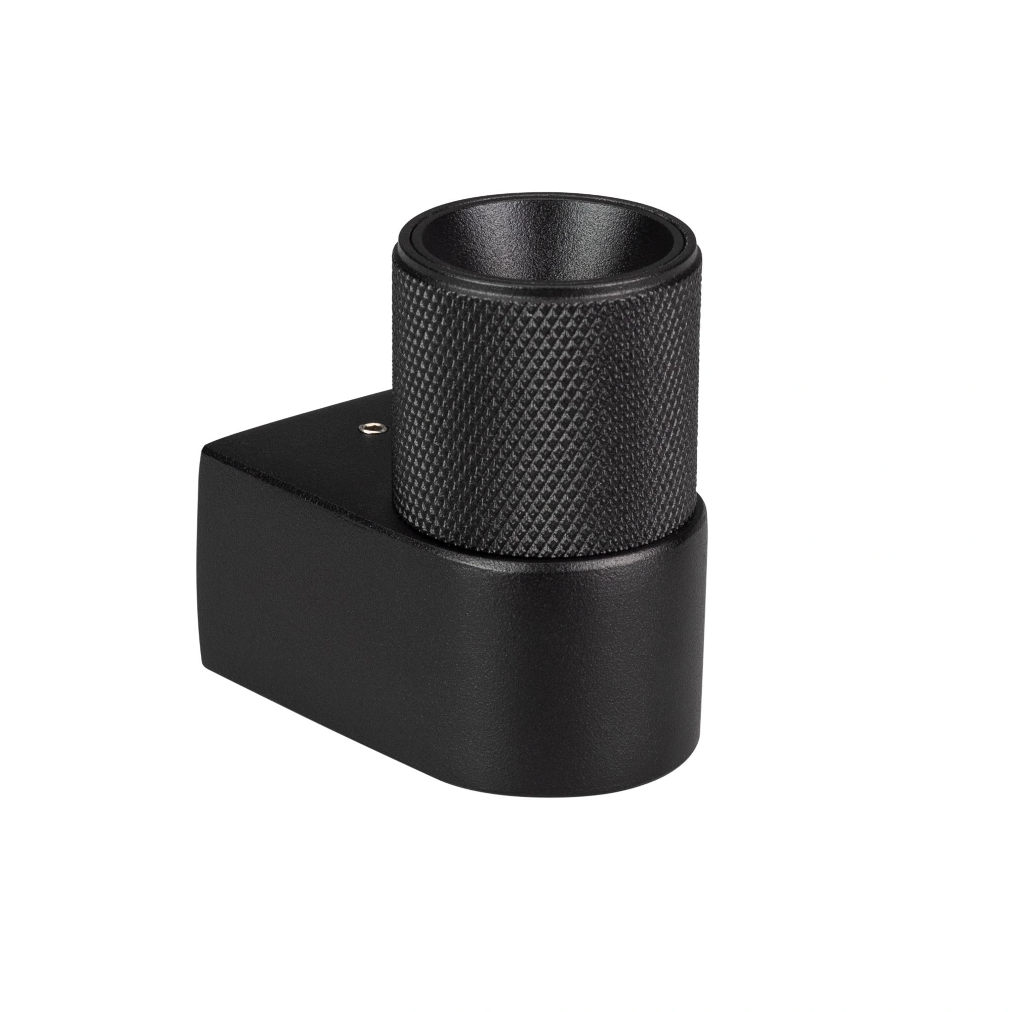 Настенный светильник со свечением в верхнюю или нижнюю полусферу. Мощность 3 Вт, св. поток 175 лм, 55 лм/Вт, дневной 4000 K, CRI>90, угол 40°, напряжение питания 230 В. Черный фигурный корпус из алюминия, степень защиты IP20. Размер: длина 60 мм, ширина 38,5 мм, высота 62 мм. Монтаж накладной. Драйвер 1,8-4 В, 700 мА, пульсация <1%.