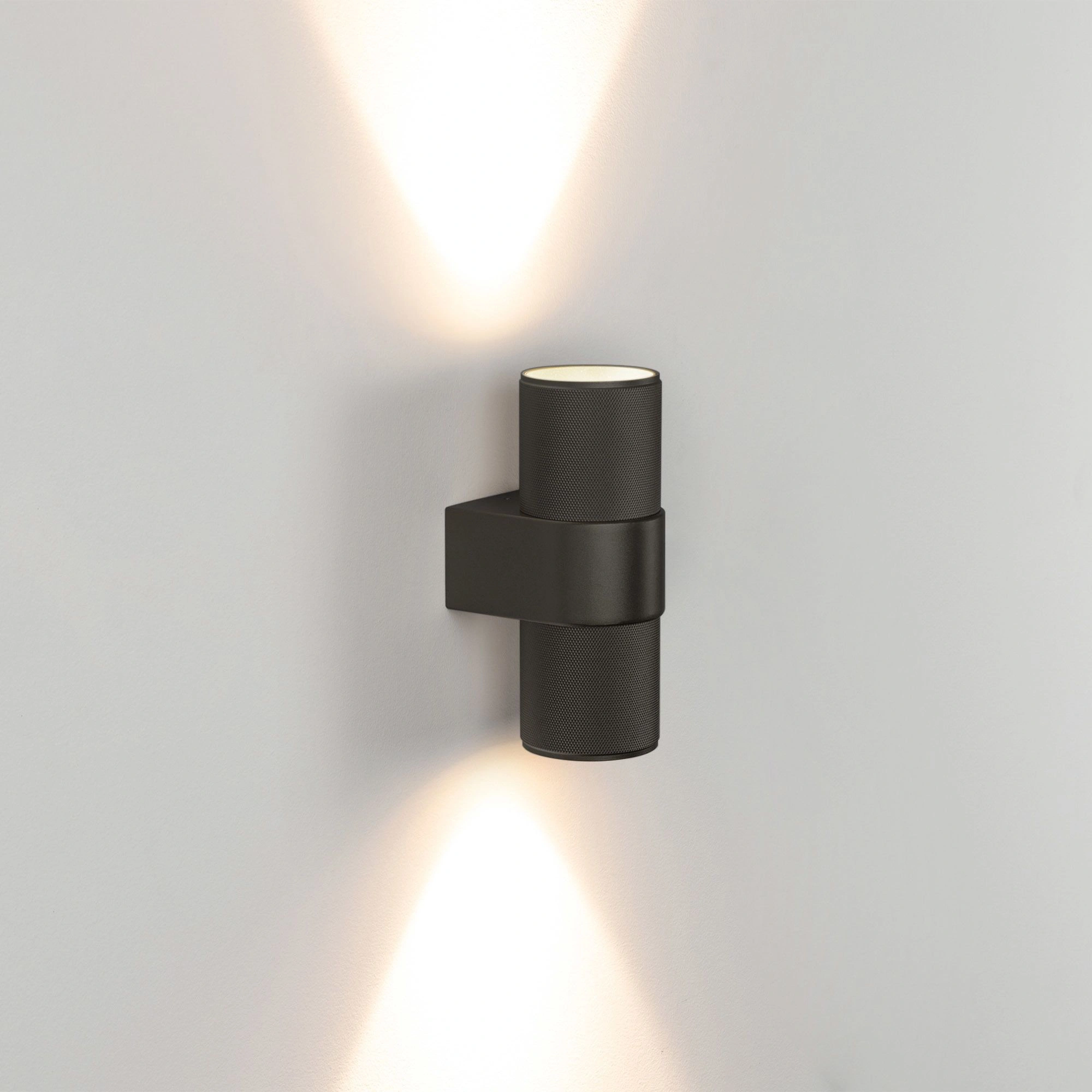 Настенный светильник со свечением в верхнюю и нижнюю полусферу. Мощность 2x6 Вт, св. поток 900 лм, 68 лм/Вт, теплый 3000 K, CRI>90, угол 40°, напряжение питания 230 В. Черный фигурный корпус из алюминия, степень защиты IP20. Размер: длина 110 мм, ширина 72 мм, высота 180 мм. Монтаж накладной. Драйвер 27-42 В, 300 мА, пульсация <1%.