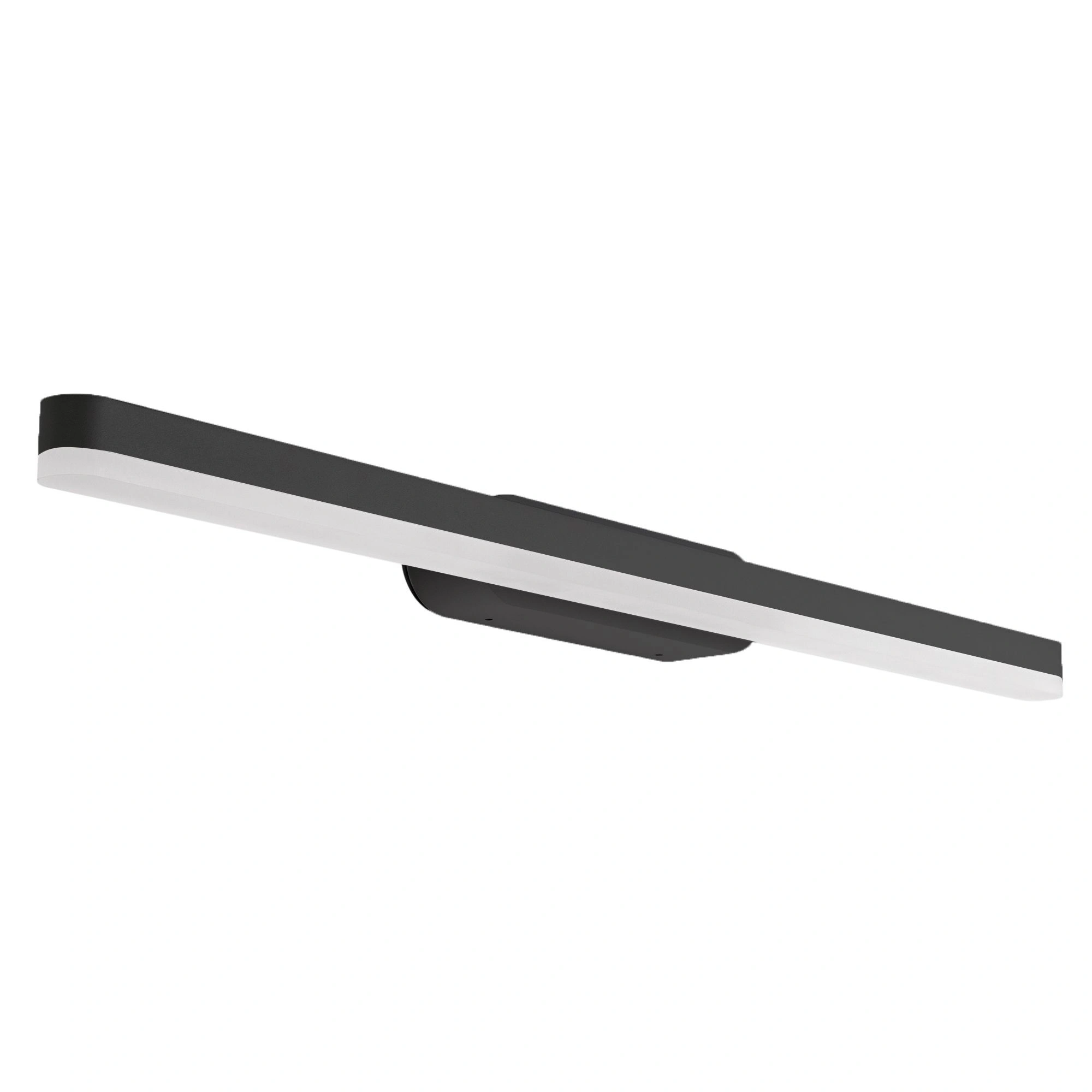 Декоративный настенный светильник. Мощность13 Вт, св. поток 600 лм, 50 лм/Вт, теплый 3000 K, CRI>90, угол 120°, напряжение питания 230 В. Черный фигурный корпус из алюминия, экран из матового поликарбоната, степень защиты IP54. Размер: длина 600 мм, ширина 55 мм, высота 65 мм. Размер светоизлучающего модуля: длина 600 мм, ширина 25 мм, высота 25 мм Монтаж накладной. Пульсация <0,5.