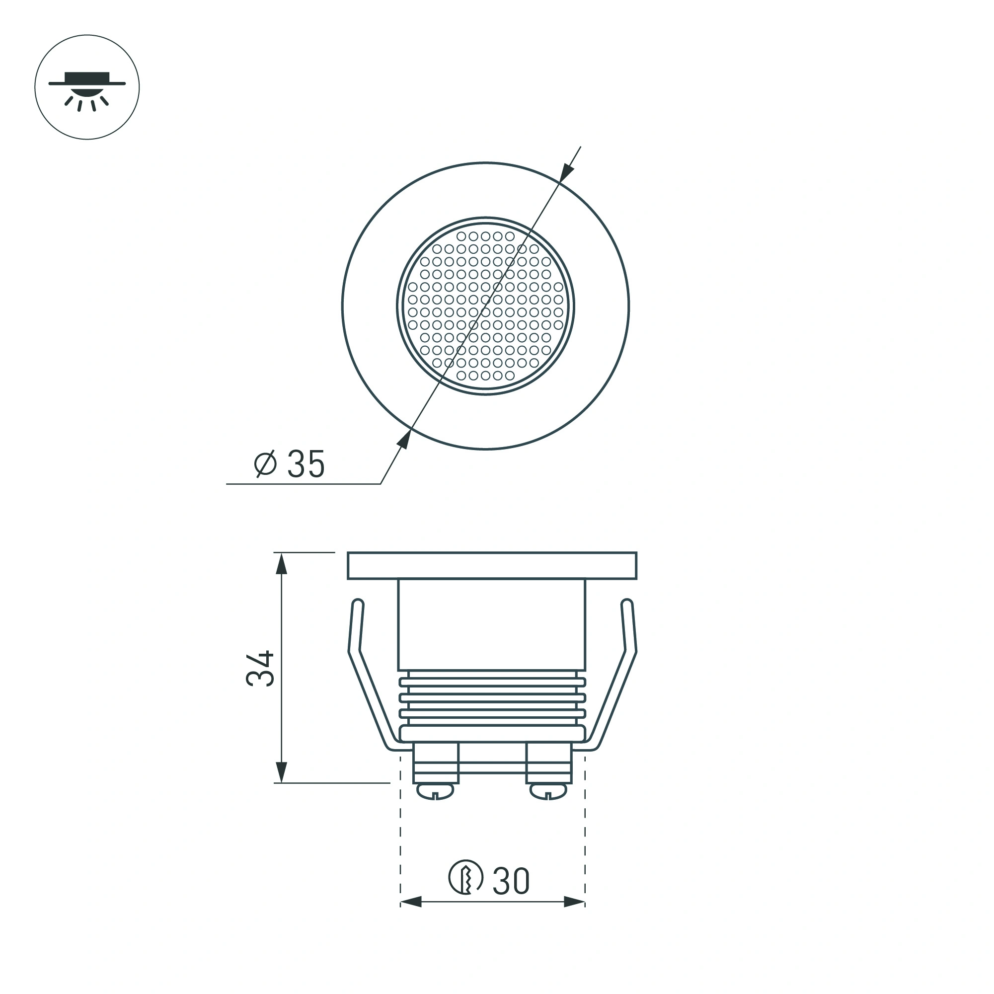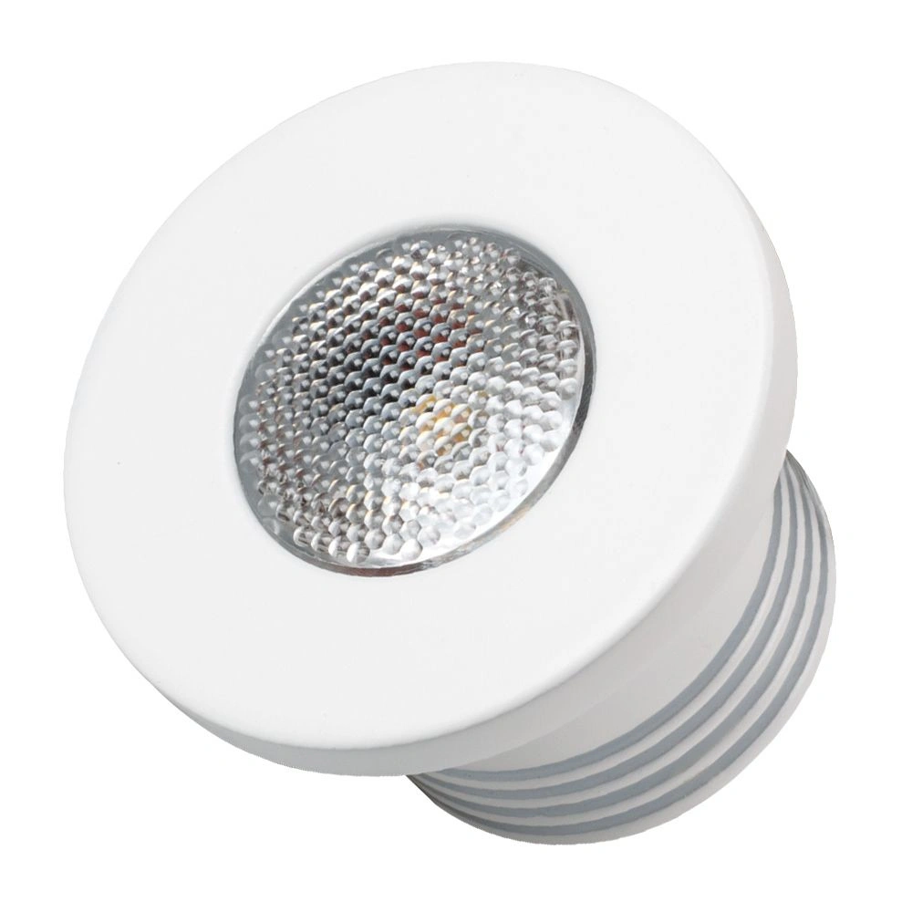 Компактный врезной мебельный светильник LTM-R35WH 1W Warm White 30deg мощностью 1 Вт с теплым белым цветом свечения (3000 К) для встраивания в мебель, гипсокартонные конструкции и другие поверхности в жилых и общественных помещениях. Светильник с узким углом излучения 30°, световым потоком 80–90 лм и индексом цветопередачи CRI>80. Легко монтируется в установочное отверстие диаметром 30 мм с помощью пружин. Драйвер для подключения поставляется в комплекте. Возможна регулировка яркости после замены штатного драйвера на диммируемый.