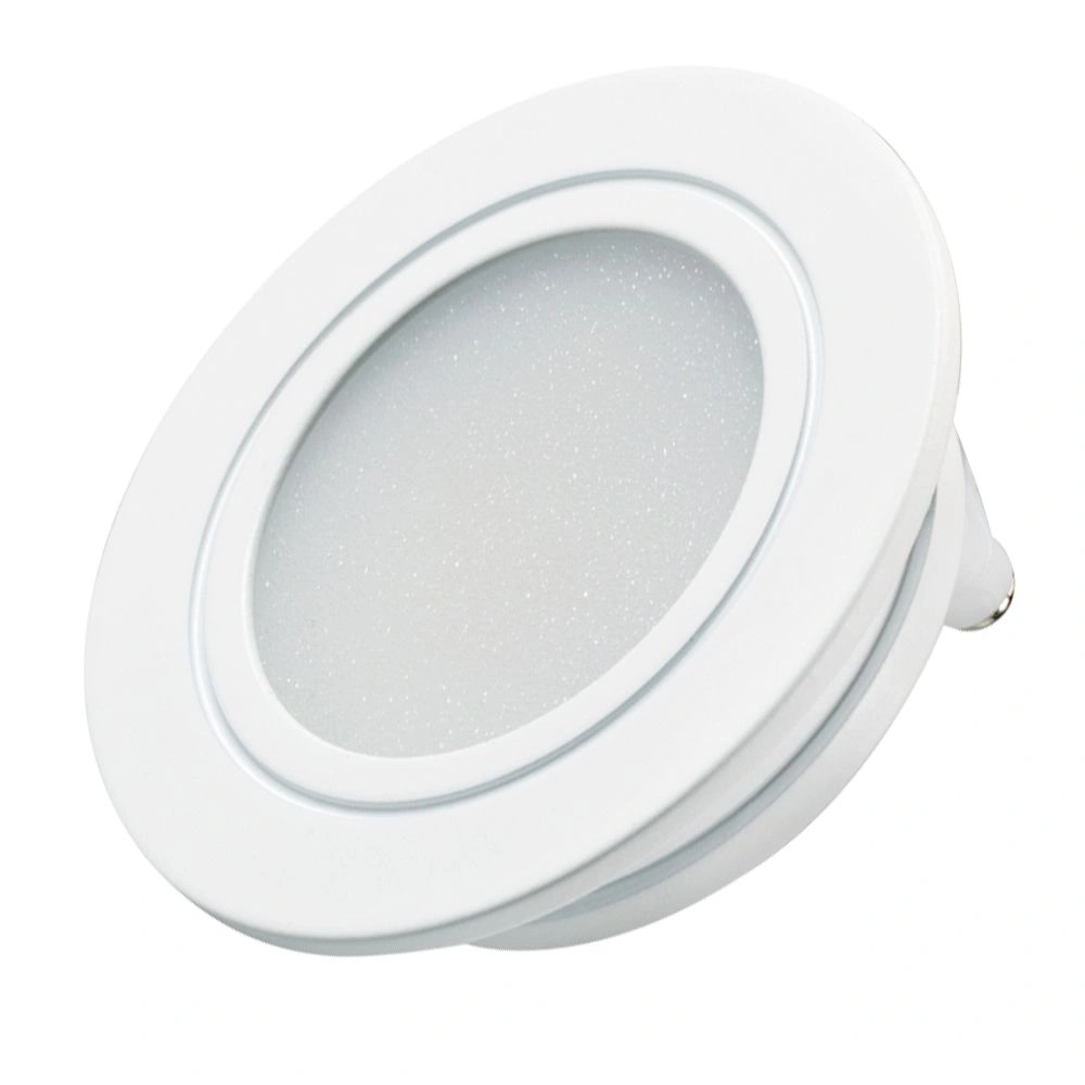 Компактный врезной мебельный светильник LTM-R60WH-Frost 3W White 110deg мощностью 3 Вт с белым цветом свечения (6000 К) для встраивания в мебель, гипсокартонные конструкции и другие поверхности в жилых и общественных помещениях. Светильник с углом излучения 110°, световым потоком 210–240 лм и индексом цветопередачи CRI>80. Легко монтируется в установочное отверстие диаметром 45 мм с помощью пружин. Драйвер для подключения поставляется в комплекте. Возможна регулировка яркости после замены штатного драйвера на диммируемый.