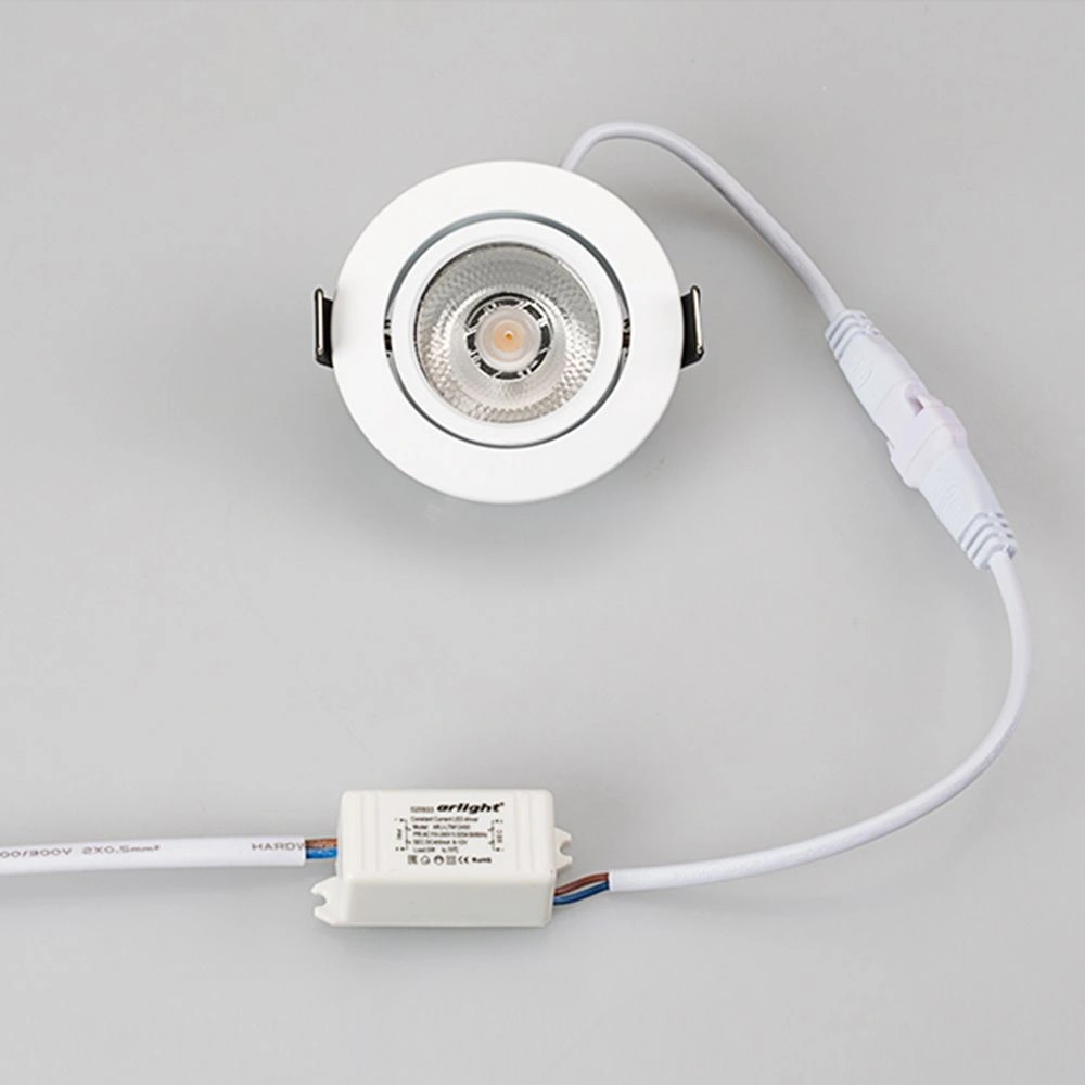 Компактный врезной мебельный светильник LTM-R65WH 5W Day White 10deg мощностью 5 Вт с дневным белым цветом свечения (4000 К) для встраивания в мебель, гипсокартонные конструкции и другие поверхности в жилых и общественных помещениях. Светильник с углом излучения 10°, световым потоком 350–400 лм и индексом цветопередачи CRI>80. Легко монтируется в установочное отверстие диаметром 55 мм с помощью пружин. Драйвер для подключения поставляется в комплекте. Возможна регулировка яркости после замены штатного драйвера на диммируемый.