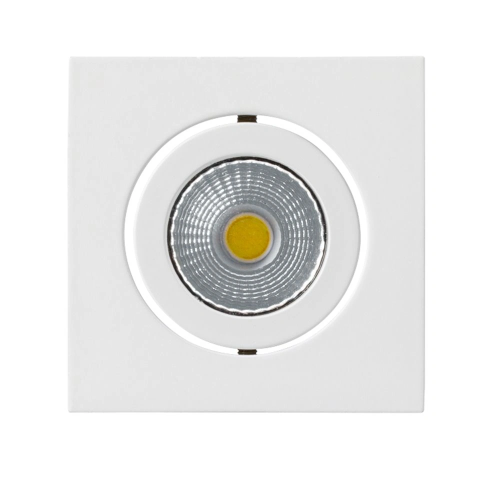 Врезной квадратный мебельный светильник 5Вт, корпус белый алюминий. Цвет ДНЕВНОЙ БЕЛЫЙ 4000K. Светодиод 1х5W Bridgelux. CRI>80, Св.поток 350-400лм, наклоняемая ось, угол 25°. Питание 180-240VAC, 5Вт, 400mA 11-13V, драйвер в комплекте. Размеры 50x50x50 мм, врезное отверстие d42 мм.