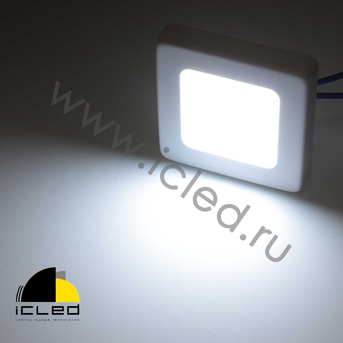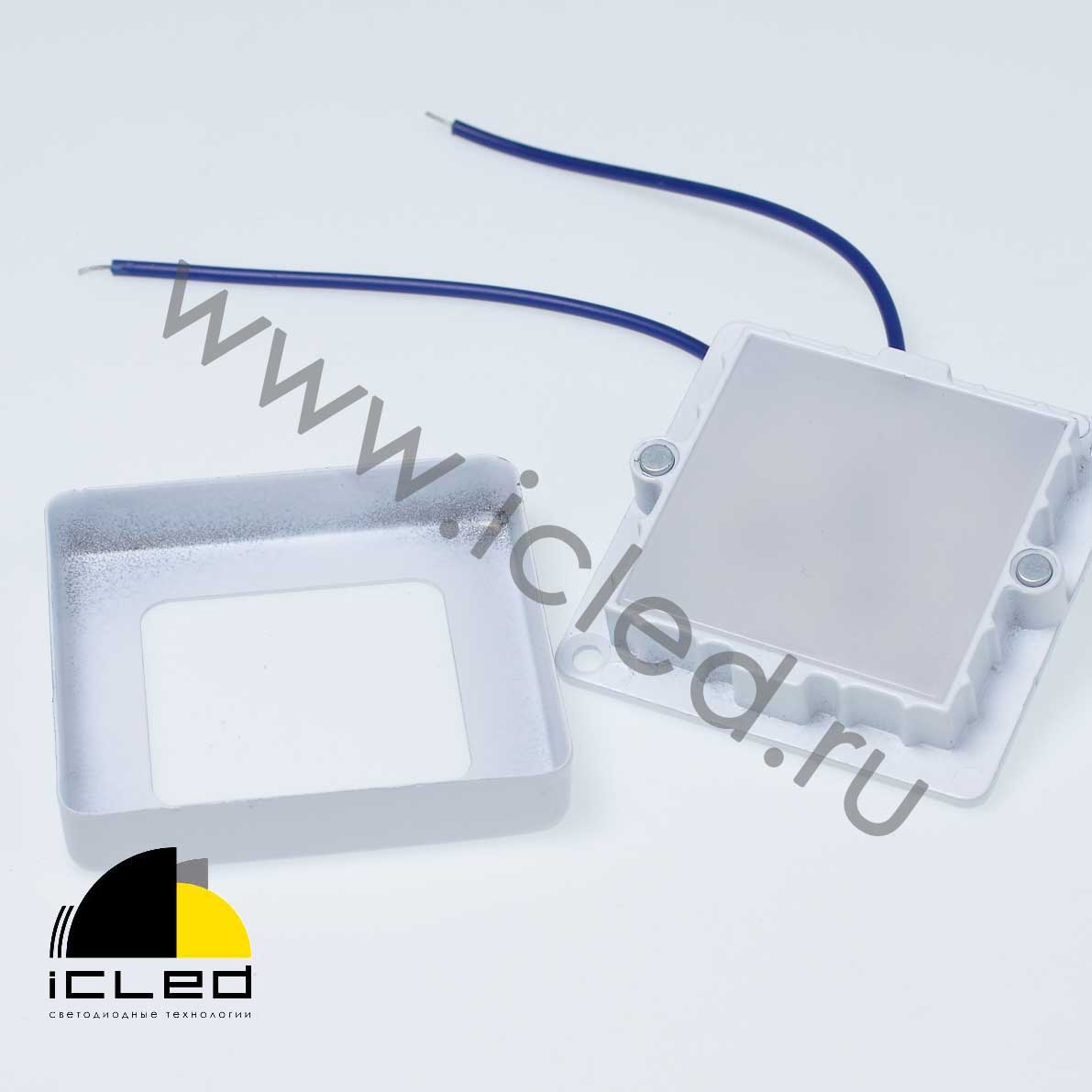 Светильник светодиодный накладной. Цвет корпуса белый. Напряжение 85-265В (подается напрямую на матрицу, без внешнего драйвера), мощность 3Вт, цвет белый 5000 - 6000К. Размер 56x56x10мм. Вес 60г.Магнитное крепление рамки. Используется для подсветки мебели, ниш, витрин. Без внешнего драйвера.