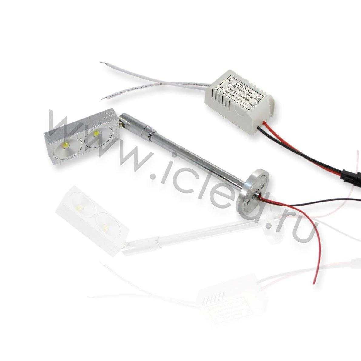 Светильник для подсветки витрин. Входное напряжение 220V, мощность 2W, цвет свечения белый 5000K. Высота 180мм, ширина 25мм.