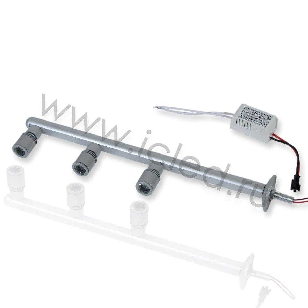 Светильник для подсветки витирин. Входное напряжение 220V, мощность 3W, цвет свечения белый 5000K. Размеры 200х55х40мм. Вес 140г.