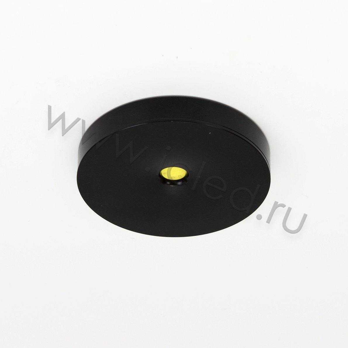 Светильник светодиодный накладной. Цвет корпуса черный. Напряжение 220В (подается напрямую на матрицу, без внешнего драйвера), мощность 5Вт, цвет свечения теплый белый 3000К, угол свечения 120 градусов. Диаметр 74мм, высота 12мм. Вес 70гр. Используется для подсветки мебели, витрин с ограниченным пространством для установки внешних драйверов.