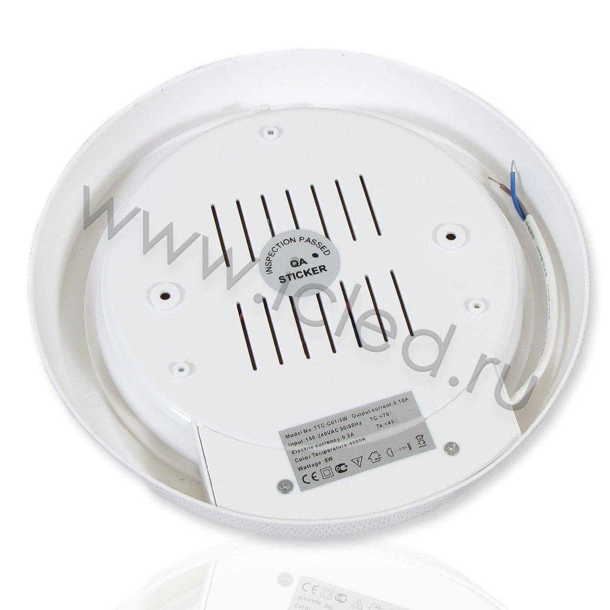 Светильник накладной. Круглый пластиковый корпус. Напряжение 110-240V, мощность 8W,цвет свечения дневной белый 4000K, световой поток 750Lm. Класс защиты IP44. Размеры 210мм.