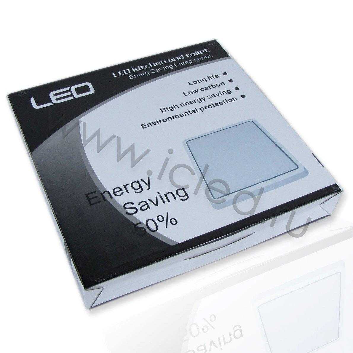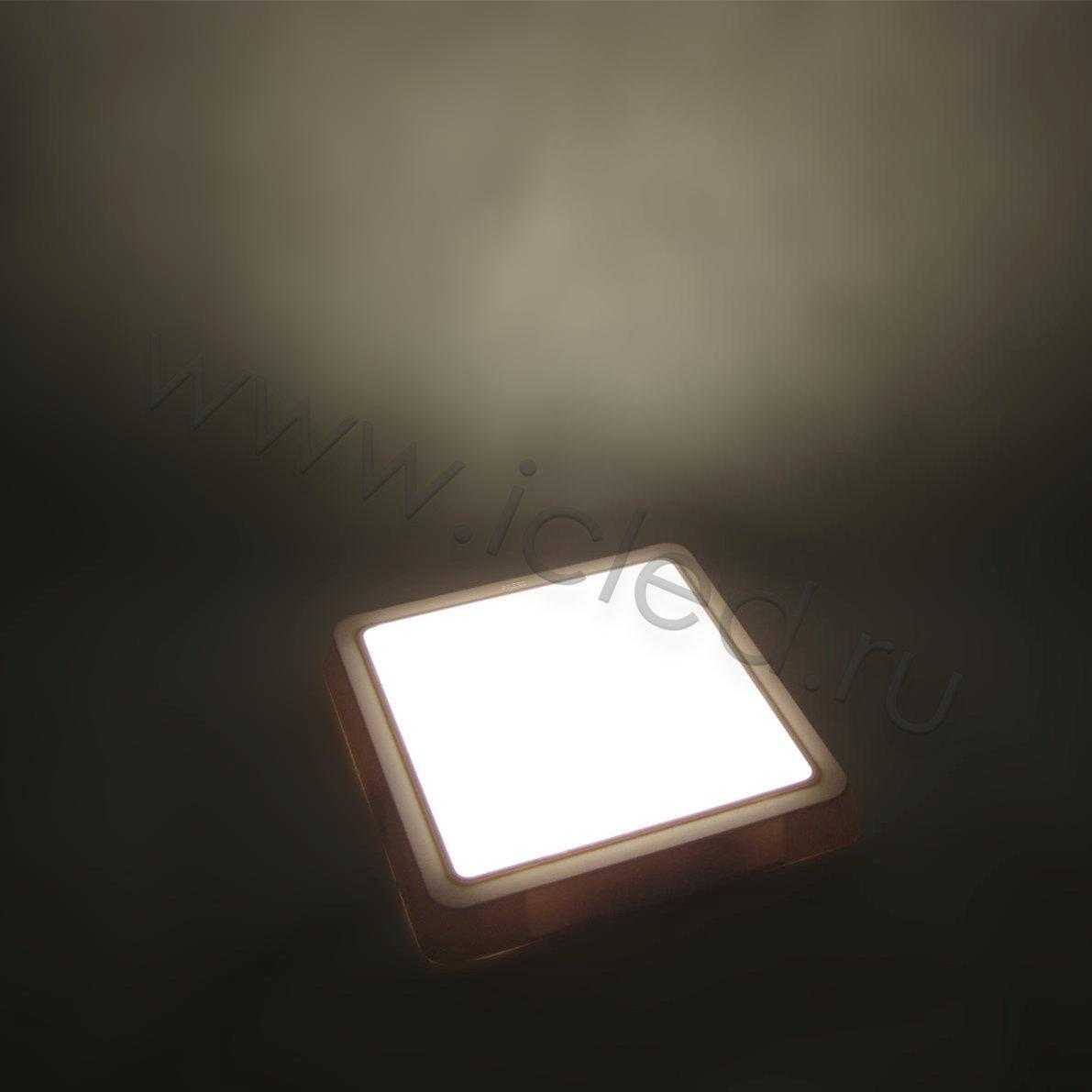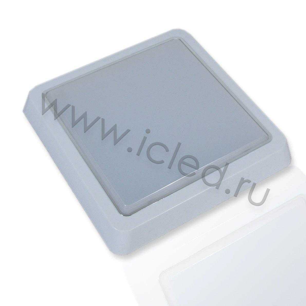 Светильник накладной. Квадратный пластиковый корпус. Напряжение 110-240V, мощность 12W,цвет свечения теплый белый 3000K, световой поток 960-1120Lm. Класс защиты IP44. Размеры 230x230мм.