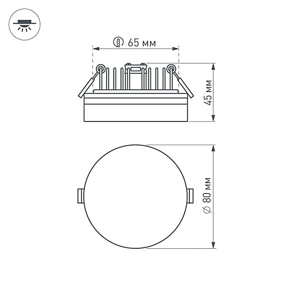 Встраиваемый светильник цилиндр, 5Вт, корпус белый алюминий + матовый акрил. Цвет ДНЕВНОЙ БЕЛЫЙ 4000K, св.поток 400лм, CRI(Ra)>80, угол 120°. Размер Ф80x45мм, установка в отверстие Ф65мм. Питание 110-240VAC, 5Вт, 300mA 15-18V, драйвер в комплекте.