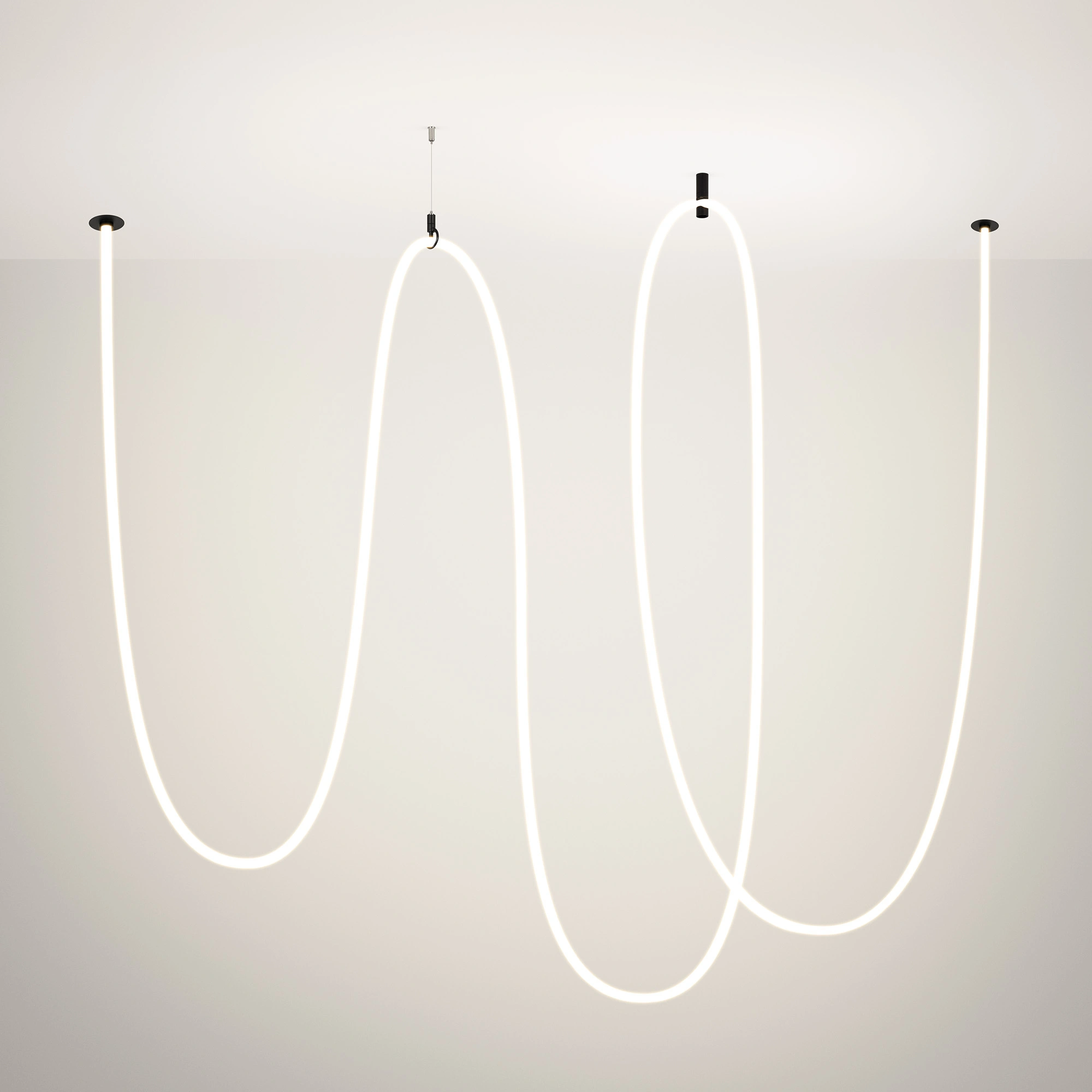 Подвесной светодиодный светильник SP-TROPIC-BUILT-TRIMLESS-R18-L10000-110W Day4000 (BK, 360 deg, 230V) мощностью 110 Вт с уникальным корпусом из гибкого неона диаметром 18 мм. Высокая световая эффективность 60-70 лм/Вт, индекс цветопередачи CRI>90, световой поток 7455 лм и сверх широкий угол излучения 360° обеспечивают качественное освещение с точной передачей цветовых оттенков, что удовлетворяет требованиям большинства проектов. Силиконовый материал неона обеспечивает мягкое, равномерное освещение дневного белого цвета (4000 К). Тип монтажа - встраиваемый. Гибкая форма, использование подвесов и креплений (приобретаются отдельно) позволяют воплотить разные идеи декоративного оформления. Корпус с защитой от пыли IP20 подходит для установки внутри помещений, где нет контакта с водой или другими жидкостями. Комбинируя светильники разного размера данной серии и располагая их на разном уровне, можно создавать оригинальные световые композиции. Встроенный драйвер позволяет безопасно и быстро подключать светильник напрямую к сети с напряжением питания 230 В. Пульсация менее 5% обеспечивает комфортное освещение без мерцания. Предназначен для основного и декоративного освещения в жилых, офисных, торговых помещениях, ресторанах, кафе и др.