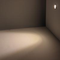Светодиодный светильник с направленным свечением. Предназначен для подсветки лестничных ступеней, коридоров и других помещений, где необходим маркерный свет. Круглый белый корпус диаметром 43 мм (под отверстие 38 мм), глубина 25 мм. Напряжение 85-265 В, мощность 1 Вт, цвет свечения теплый белый 3000-3500 K, световой поток 80 Лм, угол свечения 30 градусов. В комплекте драйвер 3-12V 300mA. Размер упаковки 75х75х60 мм. Вес 100г.