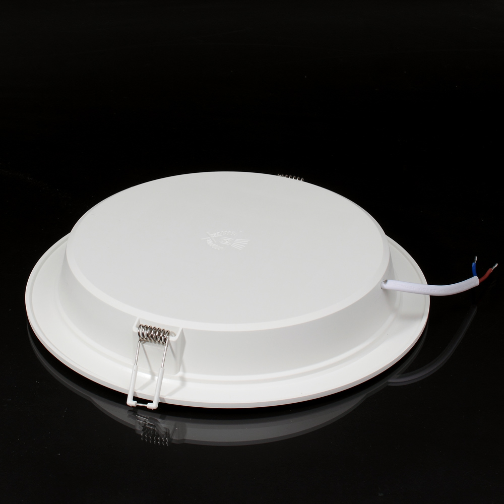 Светодиодный светильник встраиваемый. Круглый белый пластиковый корпус. Напряжение 185-265V, мощность 18W, цвет свечения белый 6000K,световой поток 1440Lm, угол свечения 110 градусов. Индекс цветопередачи CRI>80. Диаметр 220мм, высота 32мм. Установочный диаметр 195мм. Размеры упаковки 225x225x45мм. Вес 280г.