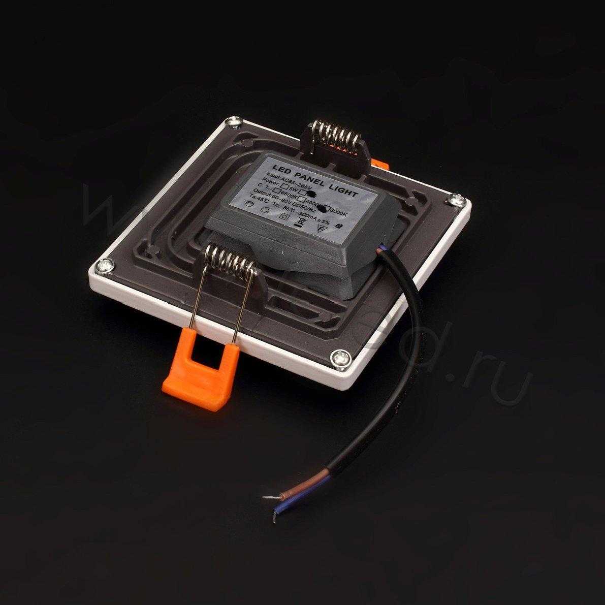 Светодиодный светильник встраиваемый, квадратный, ультратонкий, узкая рамка. Цвет корпуса белый. Напряжение 85-265V, мощность 8W, цвет свечения теплый белый 3000-3500K, световой поток 800Lm, угол свечения 120 градусов. Размеры 88х88х30мм. Установочный размер 75х75мм. Вес 150гр.