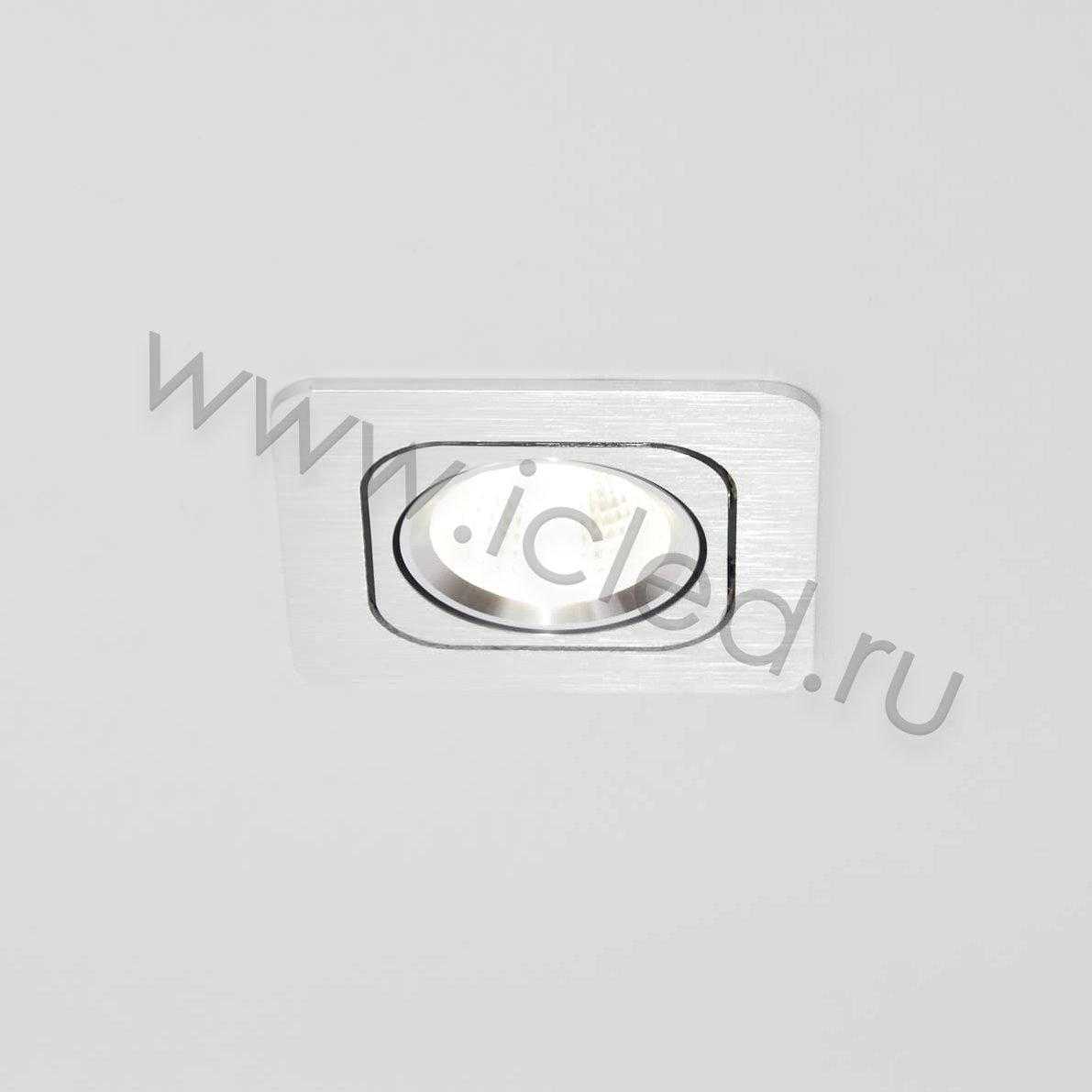 Светодиодный светильник. Квадратный серебристый корпус. Напряжение 100-265V, мощность 5W, цвет свечения дневной белый 4000-4500K, световой поток 600Lm, угол свечения 60 градусов. Размер 98х98х60мм. Установочный размер 80х75мм.