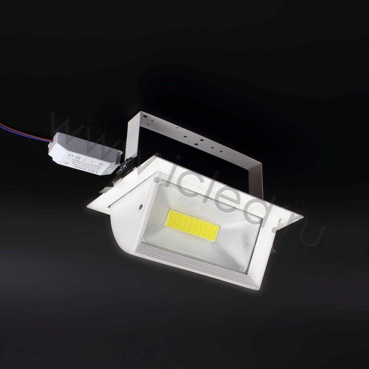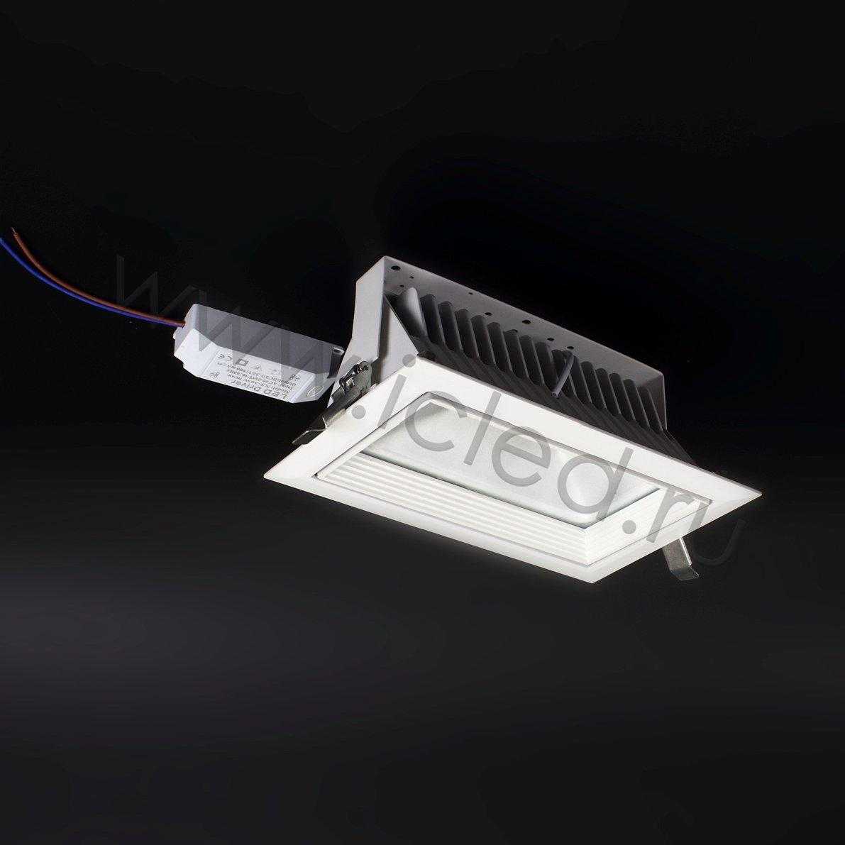 Поворотный светодиодный светильник. Корпус прямоугольный, белый. Напряжение 85-265V, мощность 48W, цвет свечения белый 5000-6000K, угол свечения 90-120 градусов, световой поток 4000Lm. Размеры 232*146*110мм. Установочные размеры 225*125*105мм. Вес 1200г.