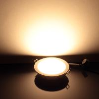 Светодиодный светильник встраиваемый. Круглый белый пластиковый корпус. Напряжение 185-265V, мощность 6W, цвет свечения теплый белый 3000K,световой поток 450Lm, угол свечения 110 градусов. Индекс цветопередачи CRI>80. Диаметр 112мм, высота 28мм. Установочный диаметр 95мм. Размеры упаковки 125x125x35мм. Вес 75г.