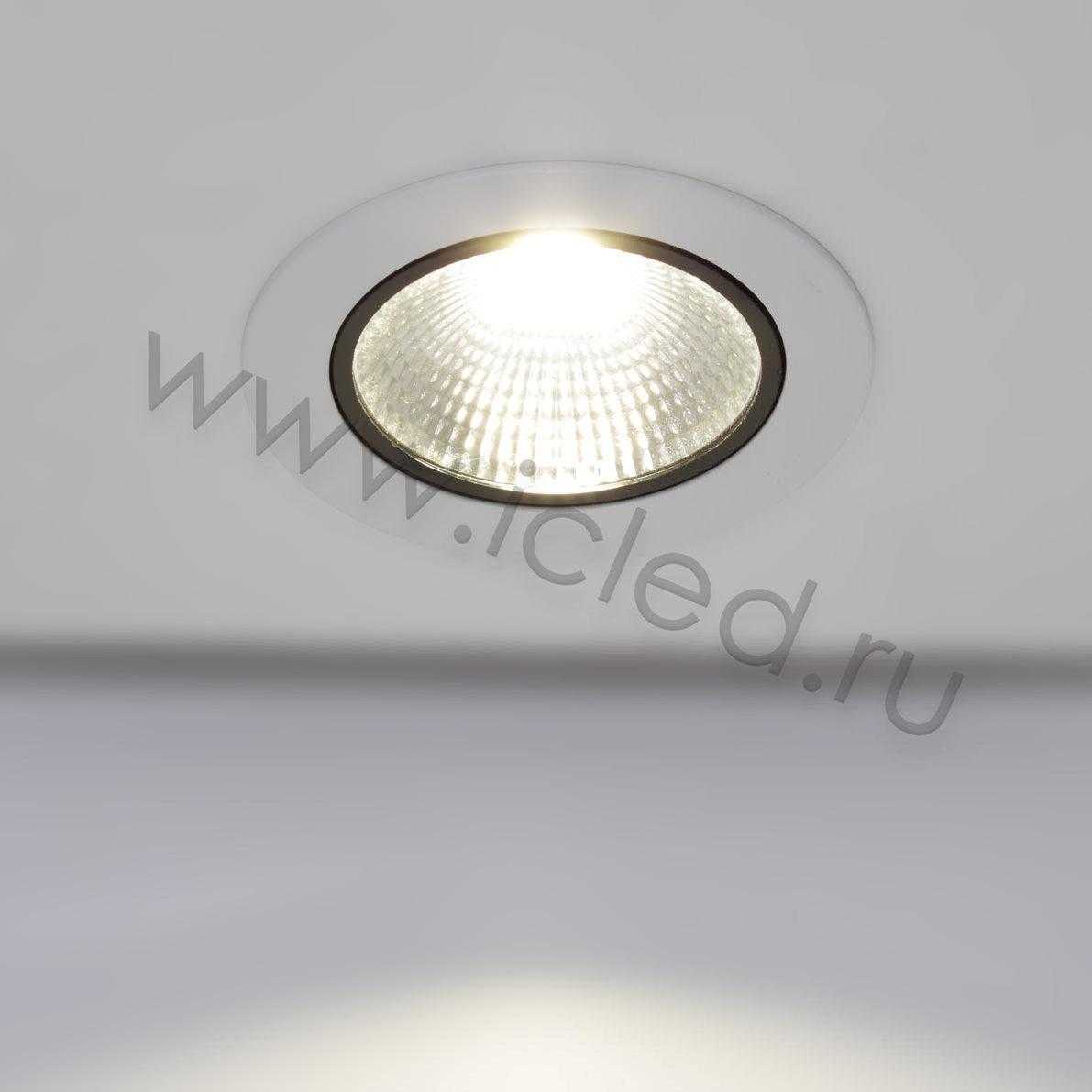 Потолочный поворотный светодиодный светильник. Круглый белый корпус. Диаметр 140мм (под отверстие 130мм). Напряжение 85-265V, мощность 15W, цвет свечения дневной белый 4000-4500K, световой поток 1500Lm, угол свечения 60 градусов.