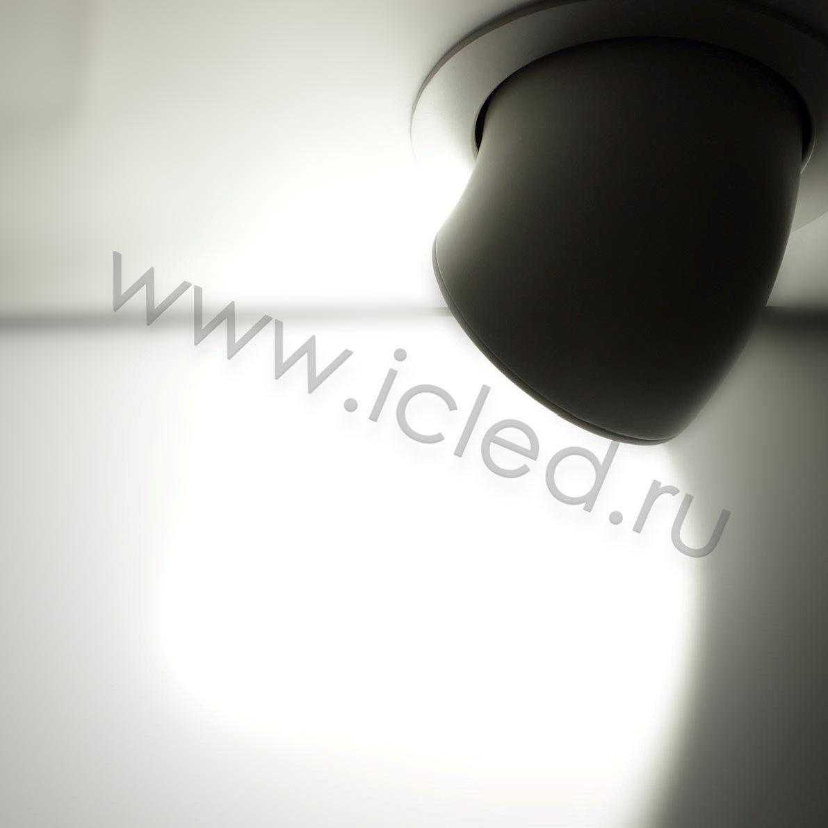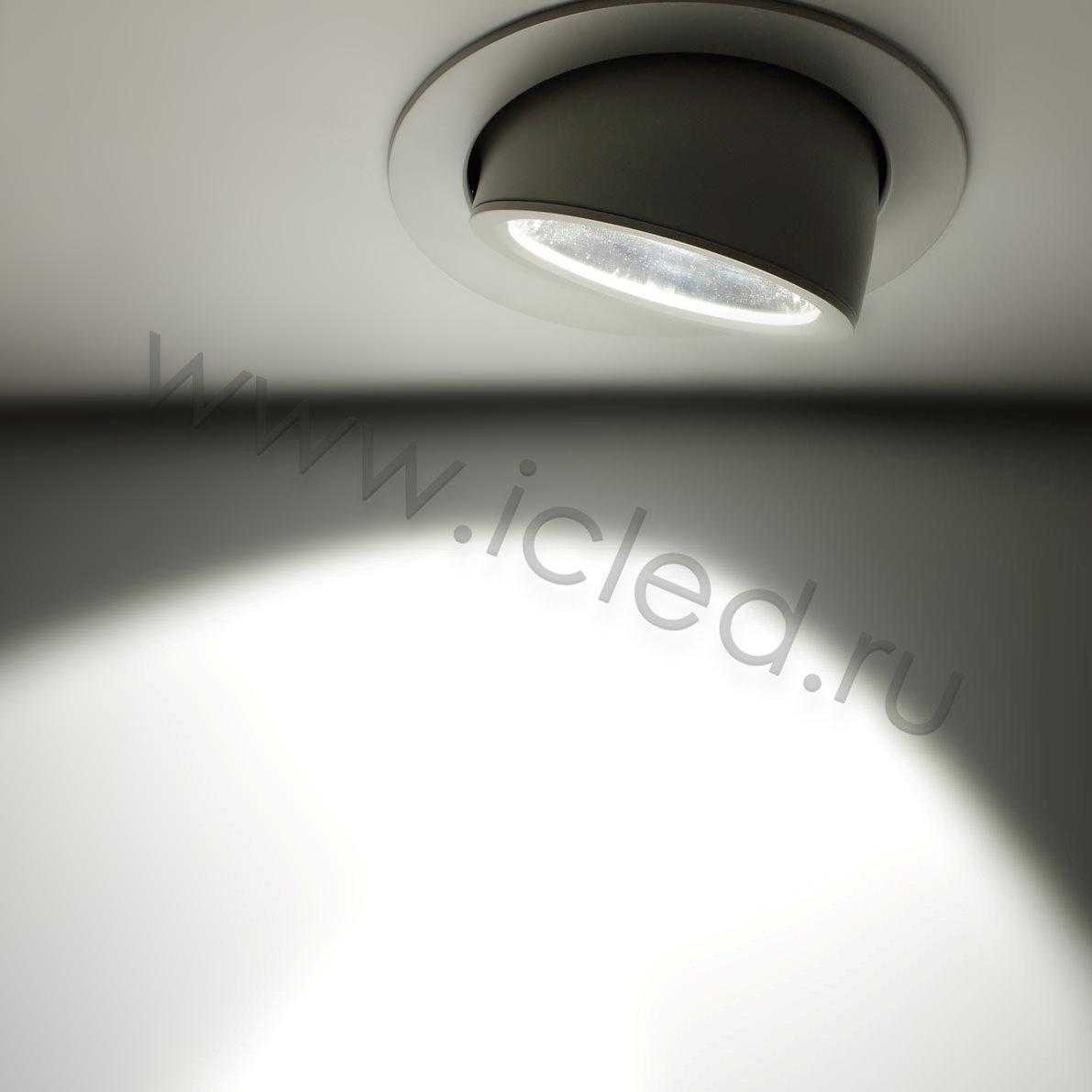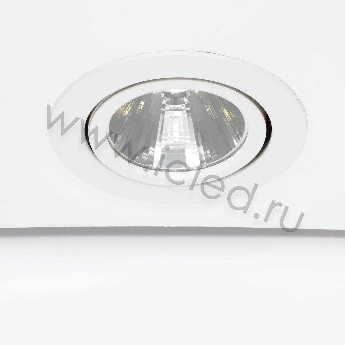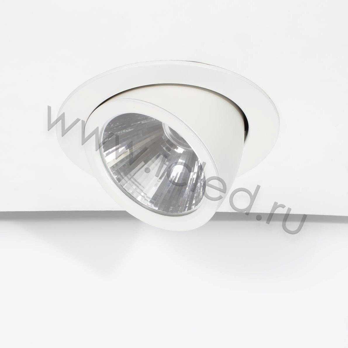Точечный светодиодный светильник. Поворотный. Корпус круглый, белый. Светодиоды COB. Напряжение 200-240V, мощность 30W, цвет свечения белый 5000-5500K, регулируемый угол свечения 90 градусов, световой поток 3820Lm. Диаметр 195мм, высота 185мм. Установочный диаметр 175мм.