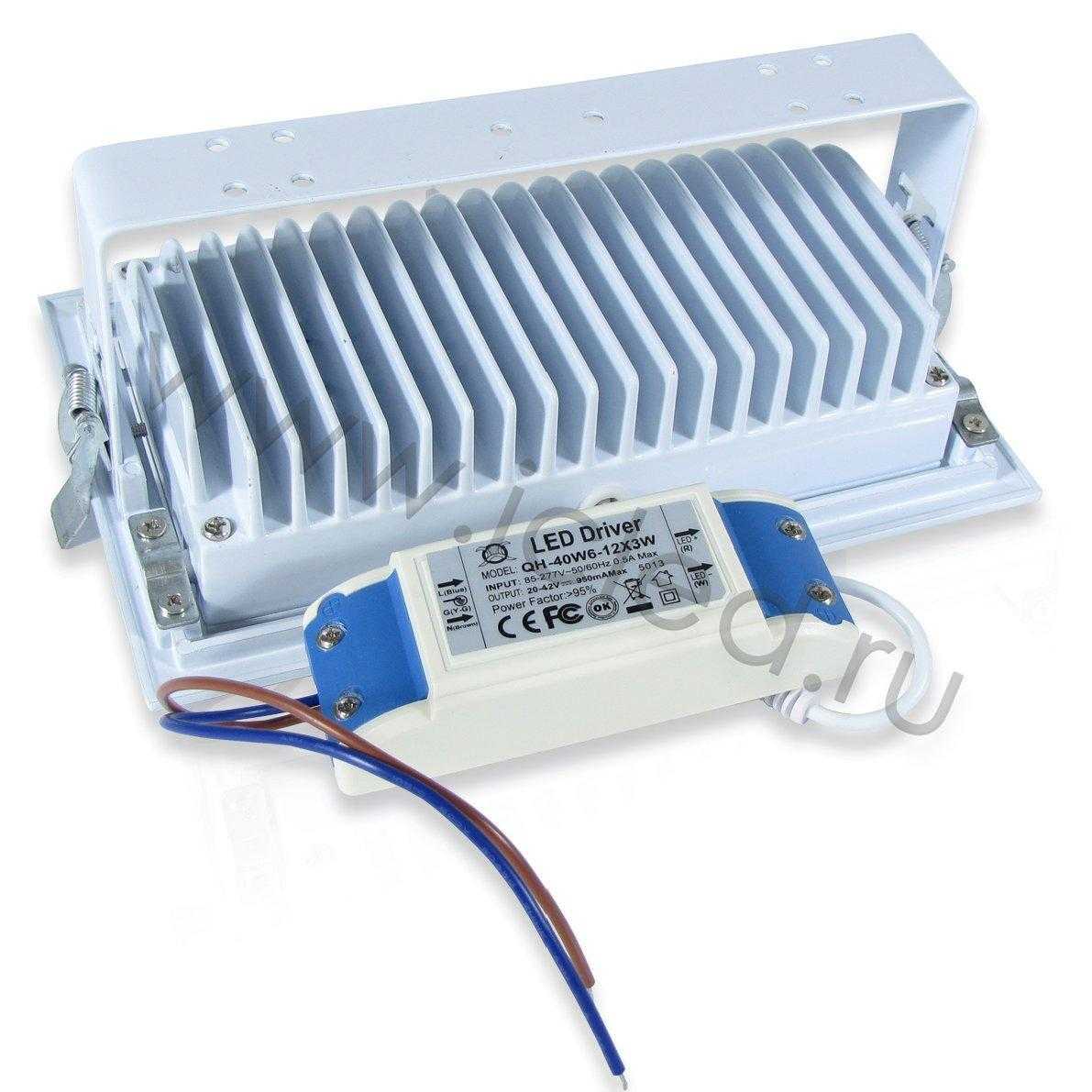 Светодиодный прожектор встраиваемый с изменяемым углом направления свечения 0-90градусов. Цвет свечения белый. Напряжение питания 220 Вольт.