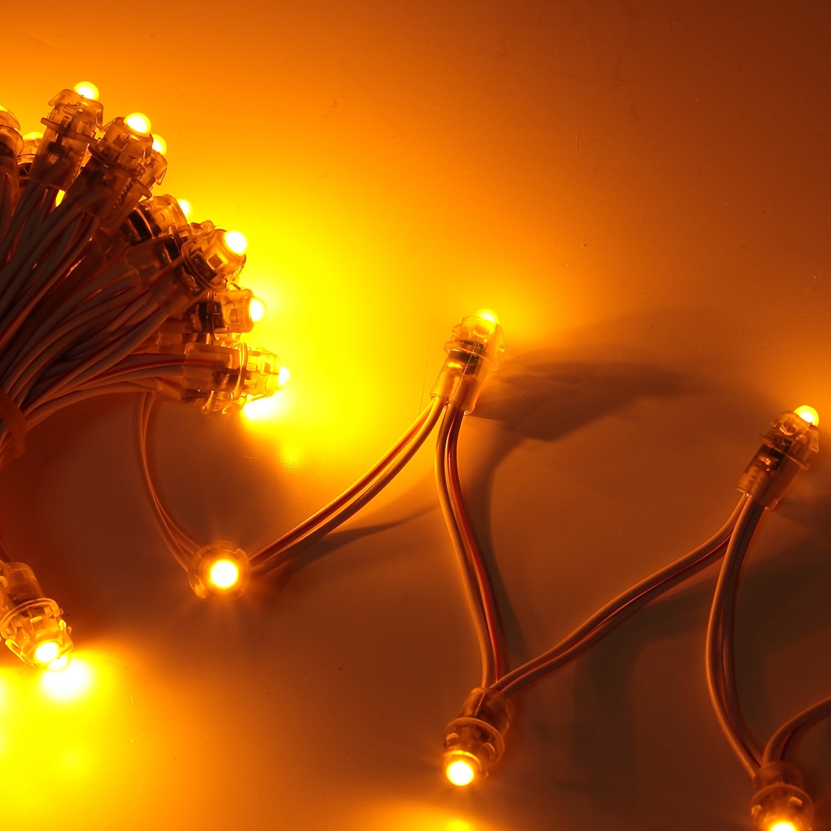 Светодиодный герметичный модуль. Тип светодиода 9мм, под установочное отверстие 8мм, количество светодиодов 1 штука. Напряжение 12V, мощность 0,2W, цвет свечения желтый (600nm), угол свечения 120 градусов, длина провода 60мм. Класс защиты IP65. Упаковка 50 штук. Диаметр 9 мм, высота 19 мм. Вес 90г.