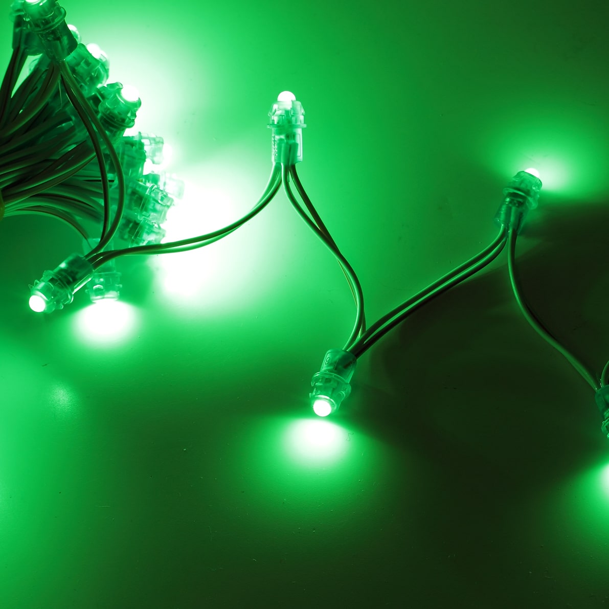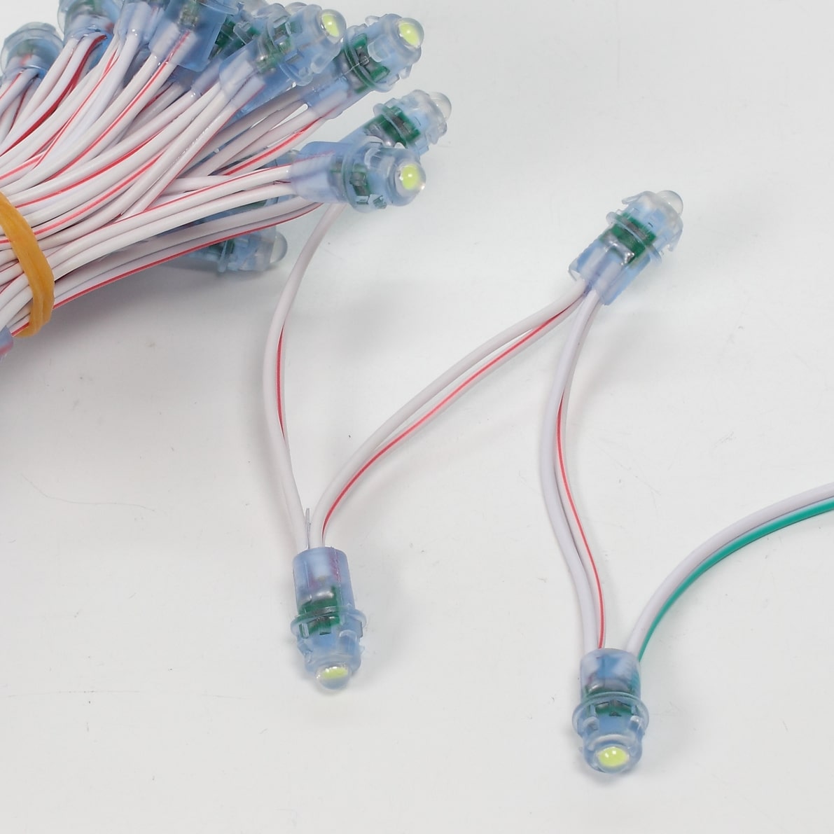 Светодиодный герметичный модуль. Тип светодиода 9мм, под установочное отверстие 8мм, количество светодиодов 1 штука. Напряжение 12V, мощность 0,2W, цвет свечения зеленый (525nm), угол свечения 120 градусов, длина провода 60мм. Класс защиты IP65. Упаковка 50 штук. Диаметр 9 мм, высота 19 мм. Вес 90г.