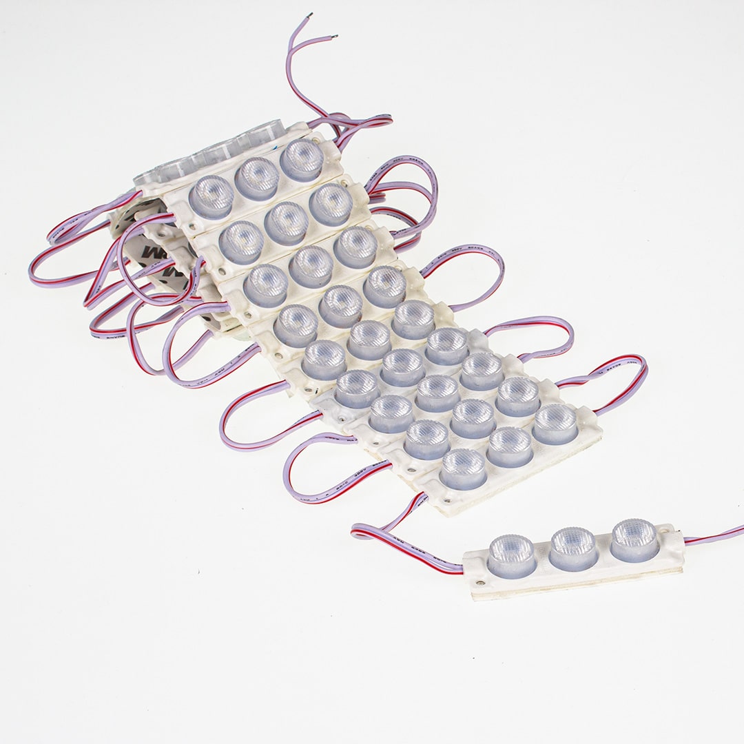 Светодиодный герметичный, линейный модуль. Тип светодиода 3030, количество светодиодов в модуле 3 штуки. Напряжение 12V, мощность 3W, световой поток 260Лм, цвет свечения холодный белый 13000К, угол свечения 140 градусов. Степень защиты IP65. Размеры 80x20x10мм. Длина провода между модулями 70мм. Упаковка 20 штук. Вес упаковки 100г. Размеры упаковки 230x80x20мм.