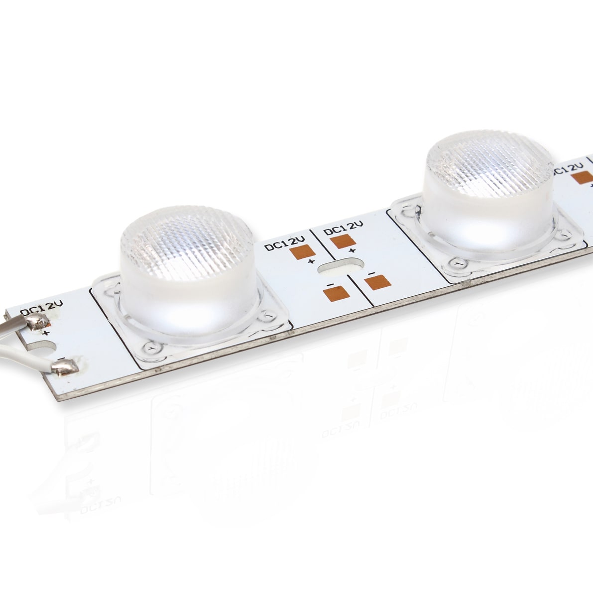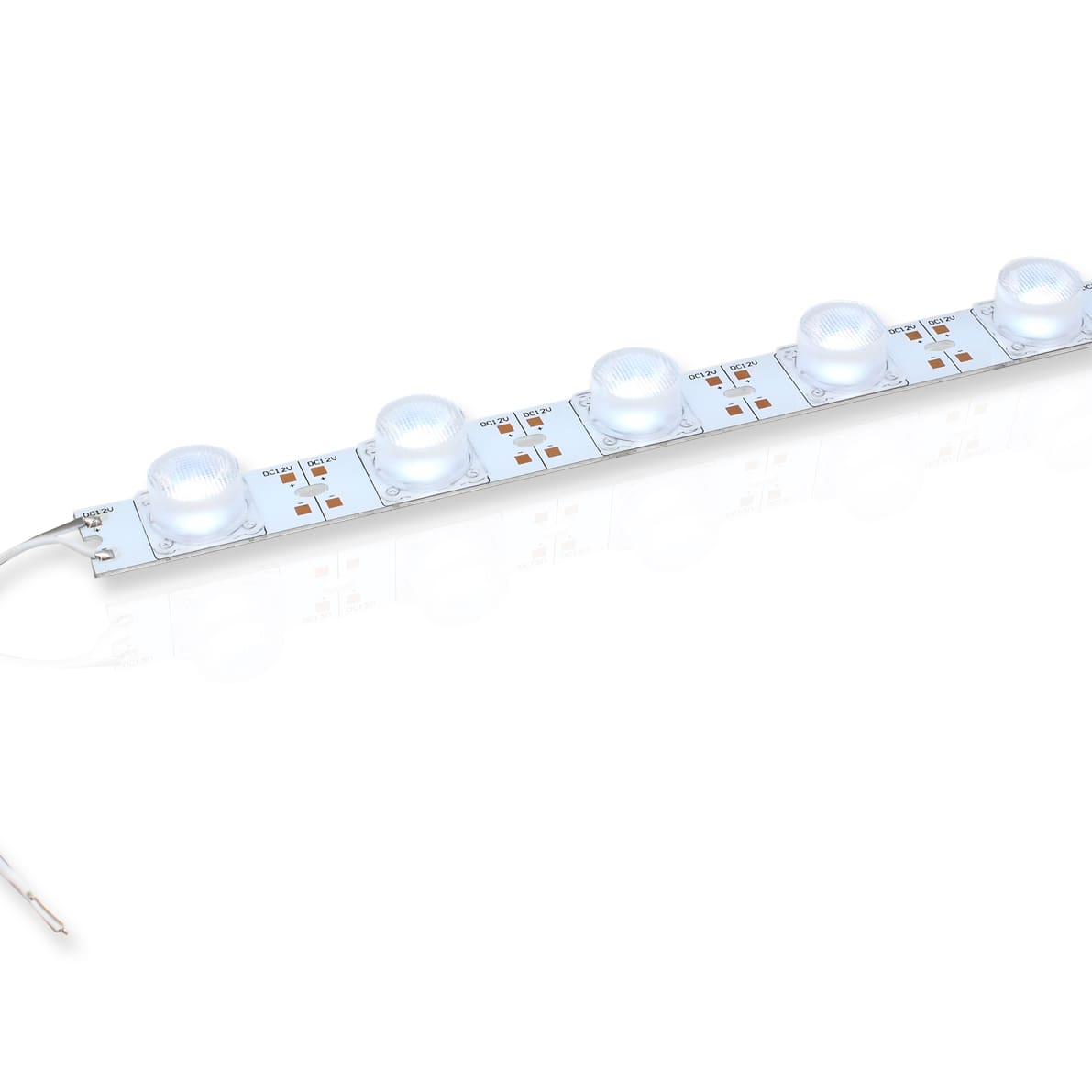 Светодиодный модуль. Тип светодиода 3030 (1W, 110Lm), количество светодиодов 18 штук. Напряжение 12V, мощность 18W, цвет свечения холодный белый 10000K, световой поток 1980Lm, угол свечения 40x15 градусов. Кратность реза 54мм. Размеры 975x25x16мм. Вес 180г.
