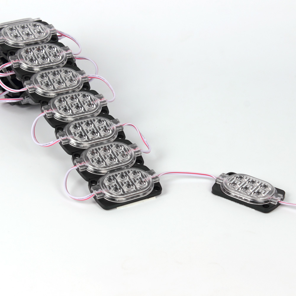 Светодиодный герметичный, линейный модуль. Тип светодиода 2835, количество светодиодов в модуле 6 штук. Мигающий режим. Напряжение 12V, мощность 1,2W, световой поток 240Лм, цвет свечения rgb, угол свечения 15х60 градусов. Степень защиты IP65. Длина провода между модулями 60мм. Размеры 65x38x11мм. Упаковка 20 штук. Размеры упаковки 380x80x30мм. Вес упаковки 290г.