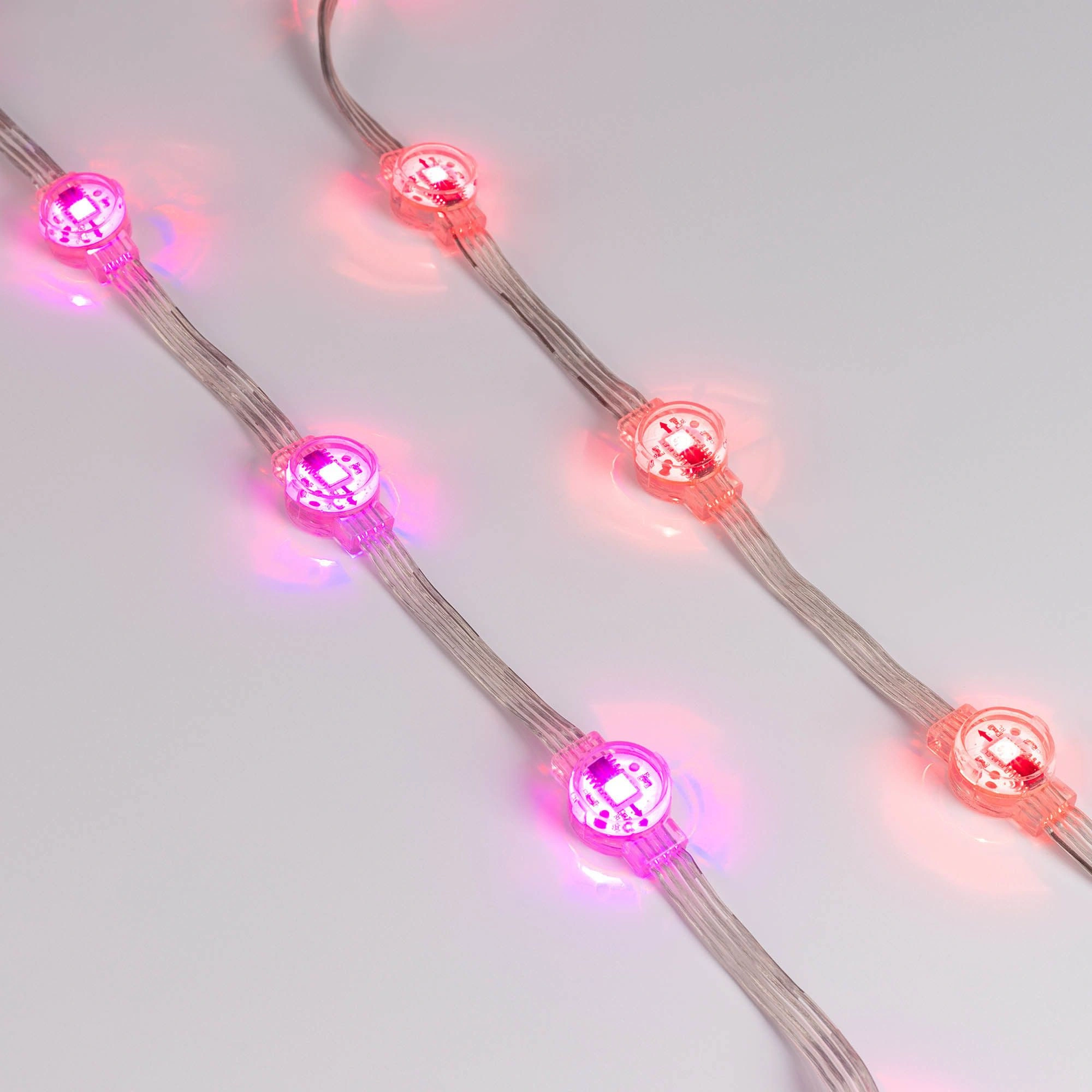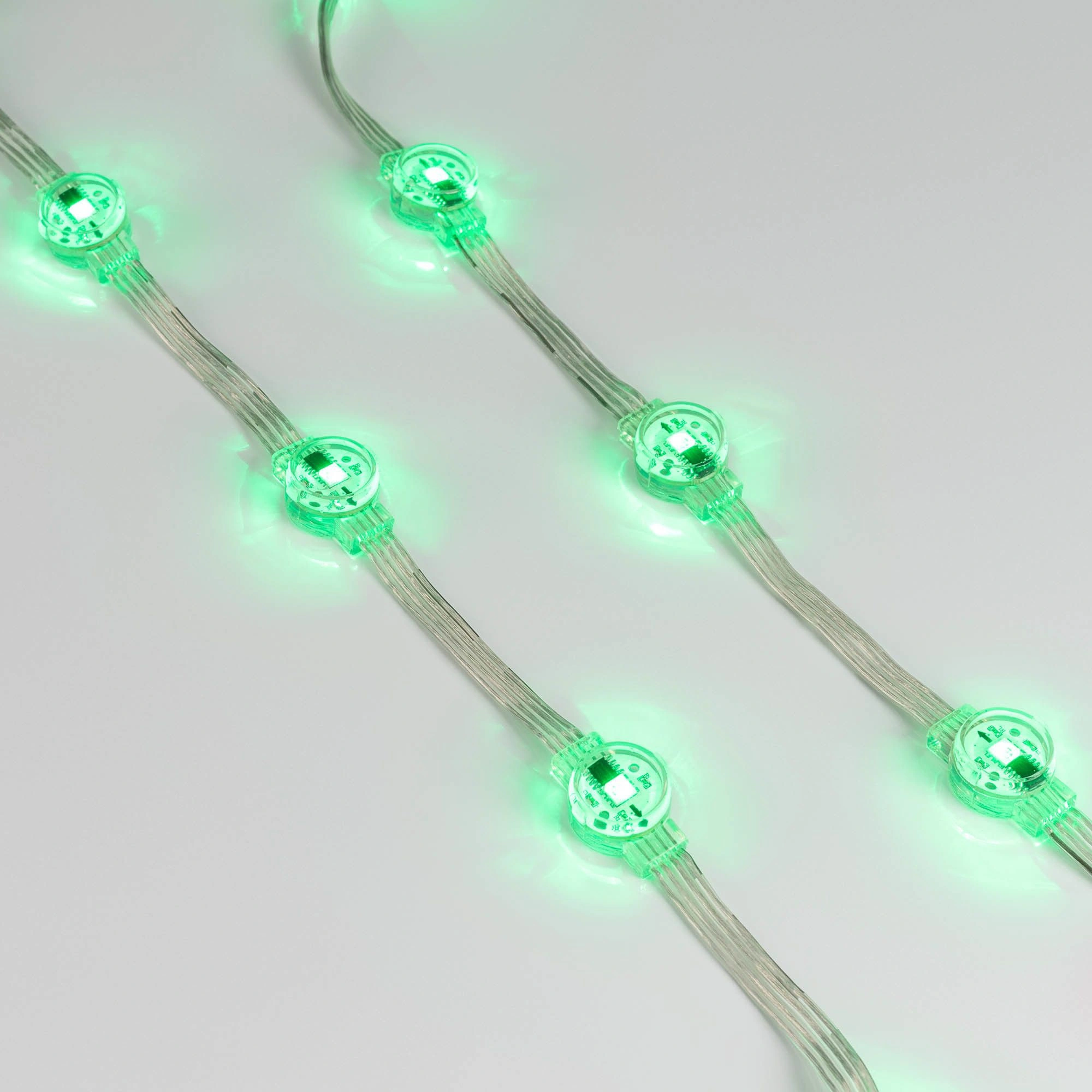 Управляемый светодиодный модуль DMX, RGB, микросхема GS8512, напряжение 12 В, мощность 0.3 Вт, 1 светодиод SMD 5060, угол 120°. Создание медиафасадов, 20 шт на проводе, расстояние между центрами модулей 105 мм, длина провода между модулями 75 мм. Степень пылевлагозащиты IP68. Размер Ø20×12 мм. Гарантия 3 года.