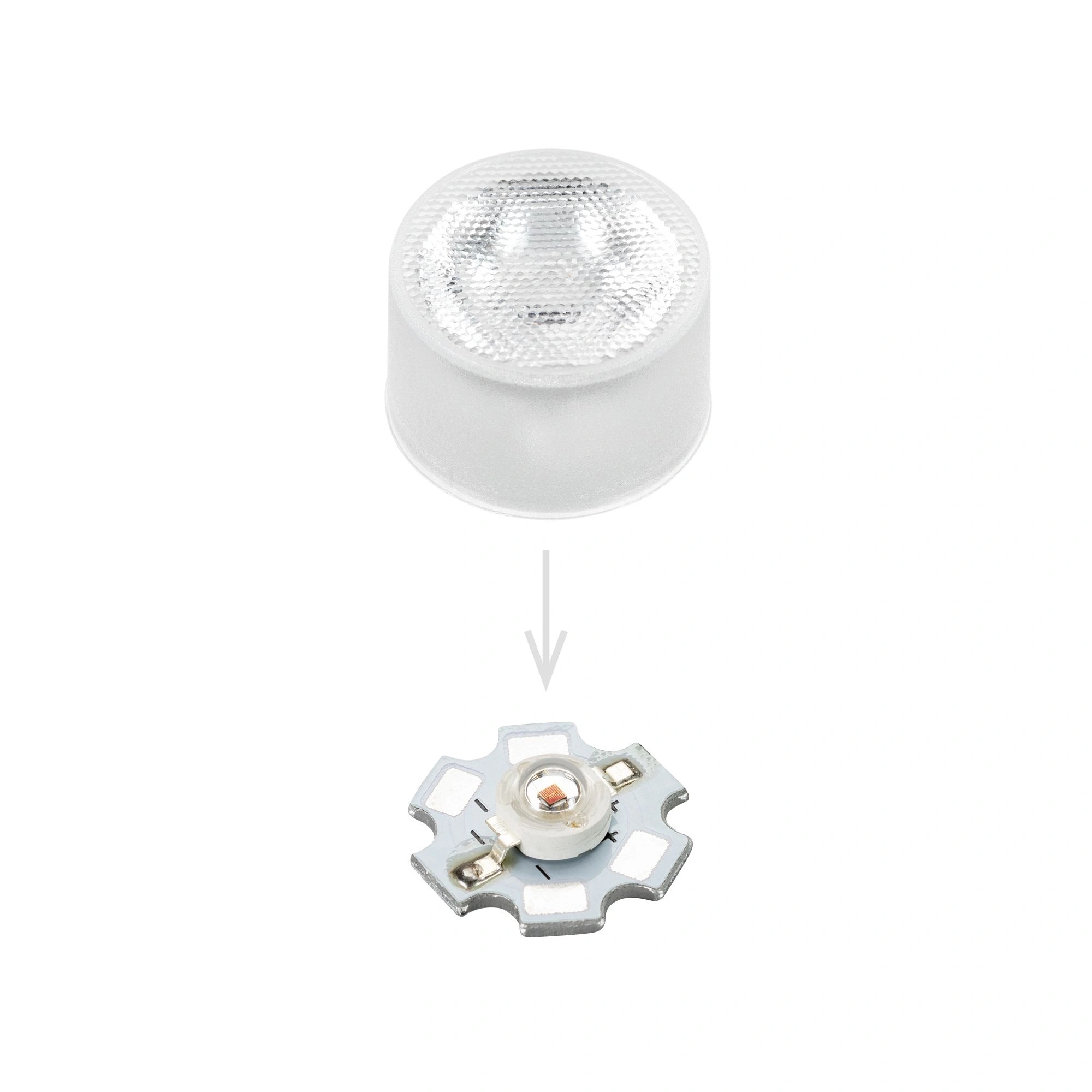 Одиночные линзы цельные (с несъемным держателем) для мощных светодиодов Emitter. Угол обзора вертикальный от 10° до 65° создает узконаправленный пучок света. Материал PС или PMMA с прозрачной линзой или микропризмой. Вторичная оптика для светодиодов необходима для формирования и управления световым потоком и повышения его эффективности.