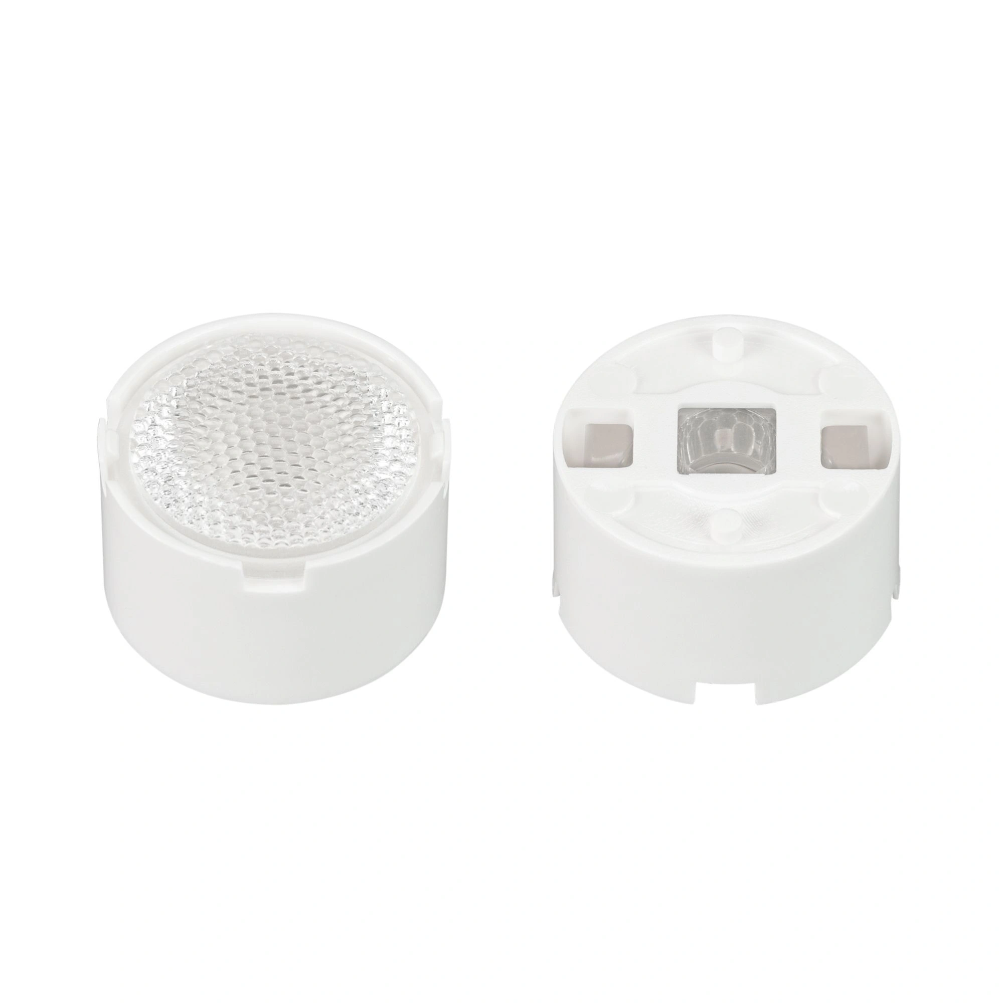 Одиночная линза со съемным холдером белого цвета для светодиодов SMD: 2525, 2835, 3030, 3535, 5050. Угол обзора: вертикальный 45°, прозрачная микропризма. Материал PMMA. Диаметр 19.5 мм, высота 11.76 мм.