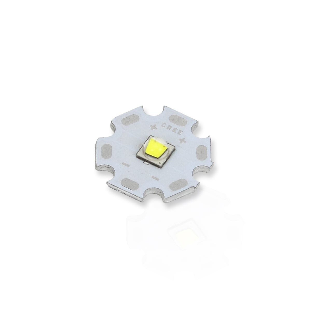 Мощный светодиод CREE XM-L2. На плате star, мощность 10W, цвет свечения дневной белый, температура свечения 4000K, напряжение 2,85-3,2V, ток до 3A, световой поток 1050Lm, угол 125 градусов. Диаметр 21мм, высота 4,5мм.Устанавливать на теплоотвод.