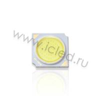 Светодиодная COB матрица. Цвет свечения белый 6000К. Алюминиевая подложка. Напряжение питания 30-34В, номинальный ток 600мА, потребляемая мощность 20Вт. Световой поток 1800-2000Лм. Размеры 19х19х1,8мм. Диаметр светящегося поля 16,5мм. Устанавливать на теплоотвод.