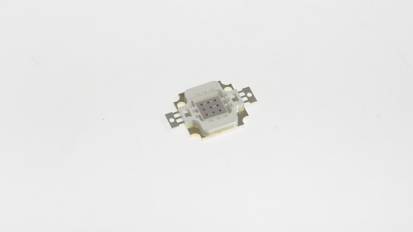 Светодиодная матрица COB. Цвет красный, мощность 10W, напряжение 18-21V, ток 300mA, угол 120 градусов. Размеры 29x20x3.5мм. Вес 5г. Устанавливать на теплоотвод.