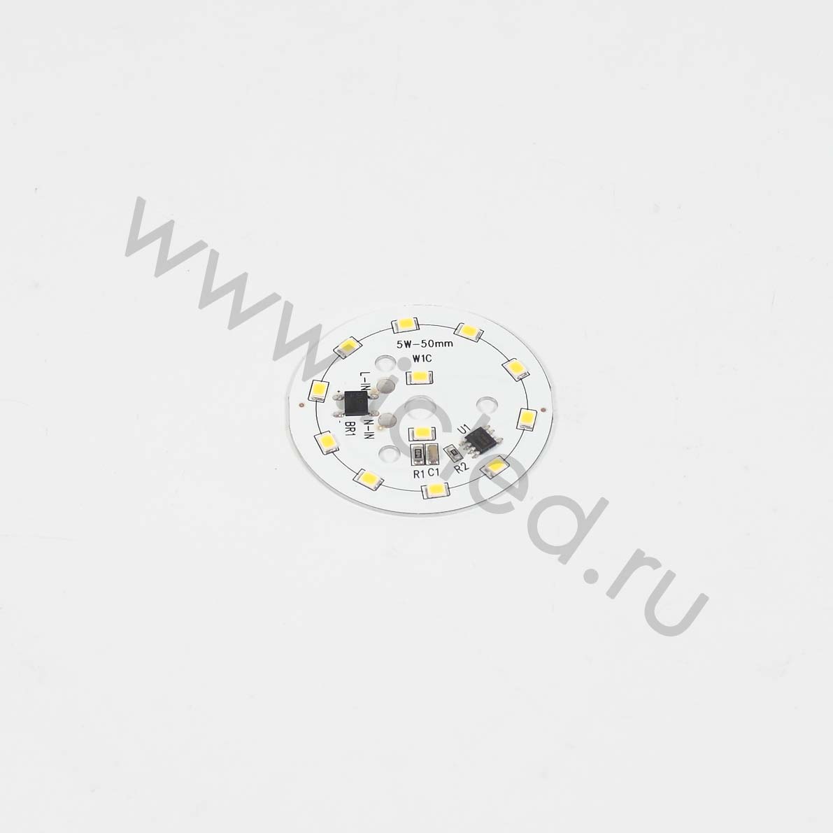 Светодиодная круглая матрица на алюминиевой основе. Напряжение 220V, мощность 5W, тип светодиода 2835 - 12 штук, световой поток 450Lm, угол свечения 120 градусов, PF 0,9 , цвет свечения теплый белый 3000-3500К. Диаметр 50мм, высота 2,7мм.Устанавливать на теплоотвод.