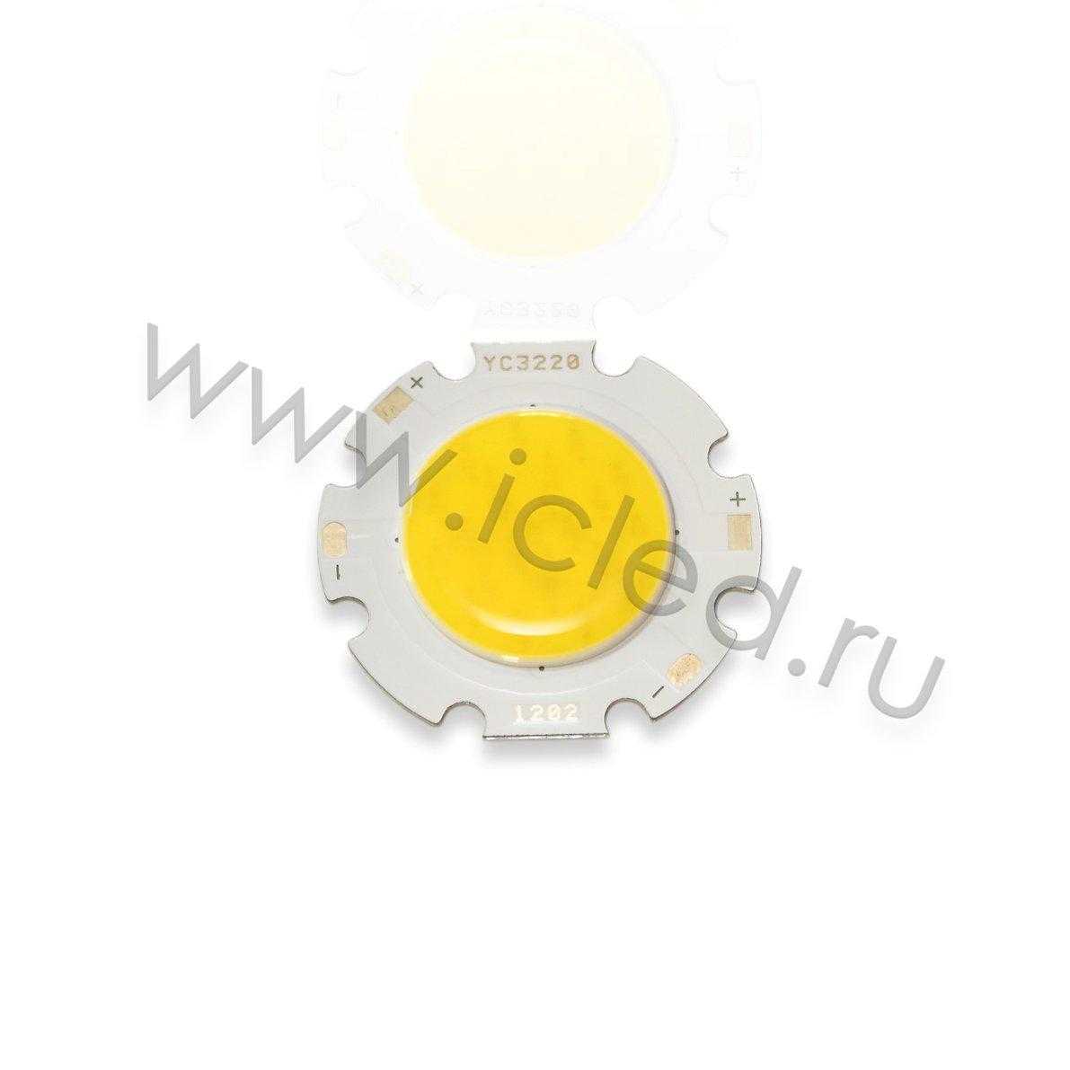Светодиодная COB матрица. Цвет свечения дневной белый 4000К. Алюминиевая подложка. Напряжение питания 33-38В, номинальный ток 300мА, потребляемая мощность 10Вт. Световой поток 1000Лм. Размеры 30х32х2,2мм. Диаметр светящегося поля 20мм. Устанавливать на теплоотвод.