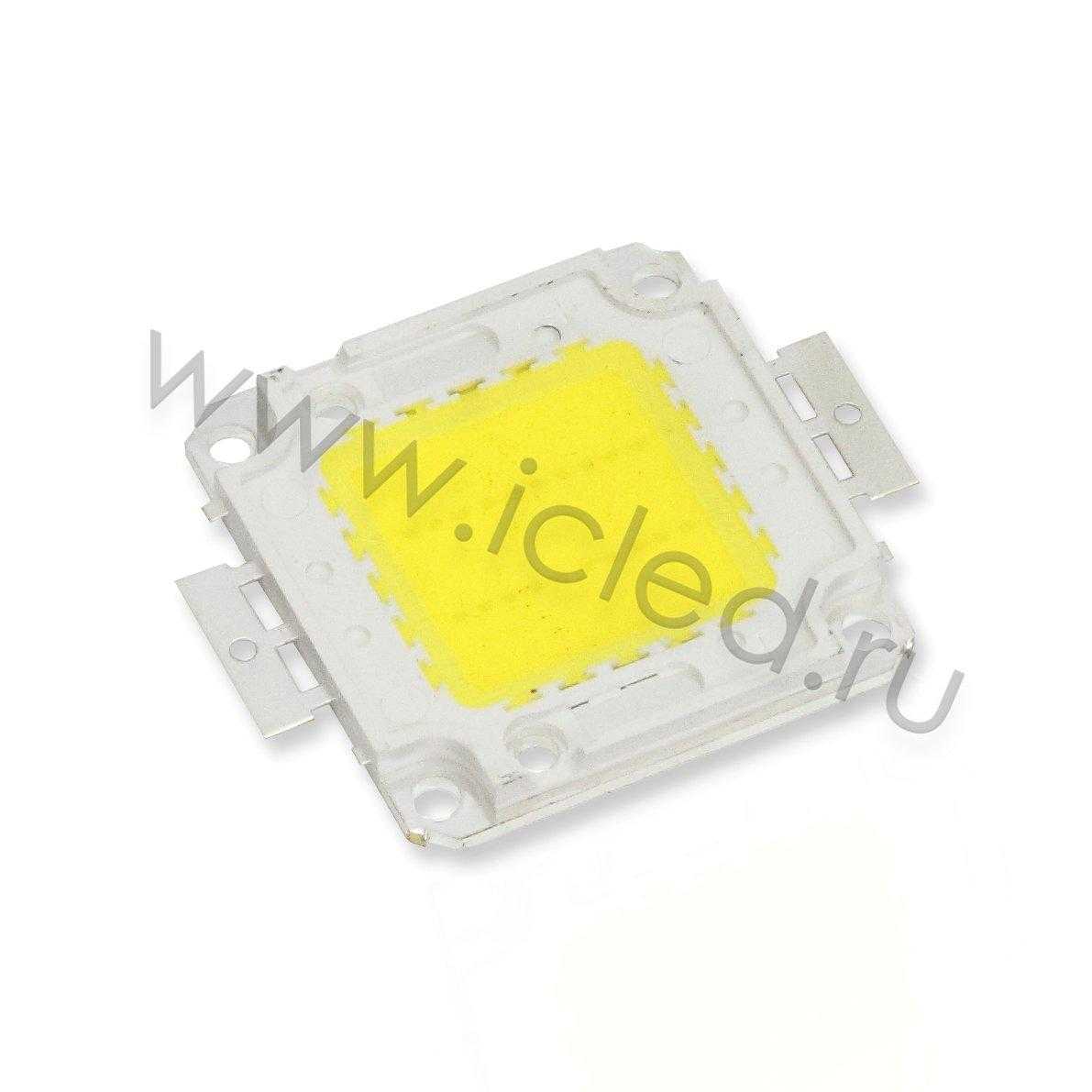 Светодиодная матрица COB. Цвет свечения теплый белый, температура свечения 3000-3500K, мощность 20W, напряжение 30-36V, ток 700mA, световой поток 1800Lm, угол 120 градусов. Размеры 42x52x5мм. Вес 24г. Устанавливать на теплоотвод.