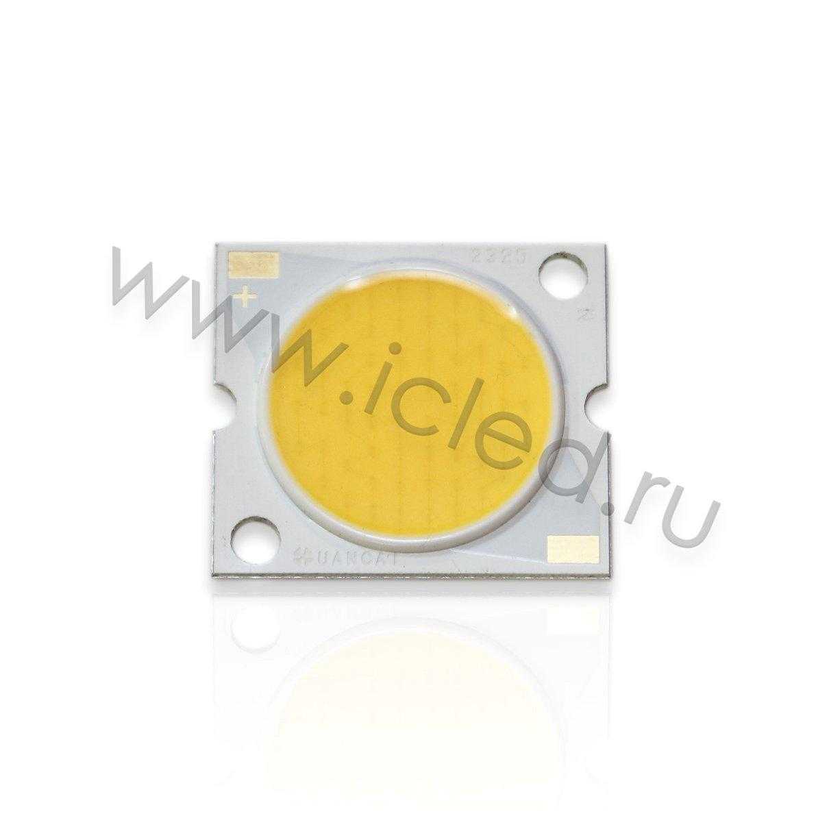 Светодиодная COB матрица. Цвет свечения дневной белый 4000К. Алюминиевая подложка. Напряжение питания 30-34В, номинальный ток 900мА, потребляемая мощность 30Вт. Световой поток 2800-3000Лм. Размеры 23х25х1,6мм. Диаметр светящегося поля 19мм. Устанавливать на теплоотвод.